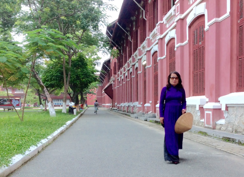 | Tường Hồng Sau cơn mưa giông tháng Sáu, bầu trời của Huế lại trong xanh và sáng lên dù đã quá xế chiều để chuyển dần sang màu trời của buổi hoàng hôn. Những vạt nắng chiếu qua hàng cây, bãi cỏ bên đường như những mảnh lụa láng mỏng manh chợt loé lên rồi chợt vụt tắt. Mặt nước sông Hương vẫn nhấp nháy những đợt sóng lăn tăn phản chiếu óng ánh vàng của ánh mặt trời gần biến mất sau dãy núi Ngự Bình xa xa. Huế của một buổi chiều sau cơn mưa không thơm ngát hương hoa cam ở hai bên những con đường, nhưng lại mát rượi. Màu của không gian Huế bỗng chốc đổi sang màu trong veo như khối nước được lọc sạch. Những giọt mưa giông và luồng gió nhẹ thổi từ mặt sông đã cuốn trôi đi những hơi thở nóng của trời Huế và màu nắng chói trên những con đường mùa hè rân ran tiếng ve kêu. Hàng Phượng Vỹ đỏ thắm thiếu vắng màu áo trắng học trò lại rung rinh cành lá đẫm nước theo gió sông. Những cánh hoa đỏ đã rơi theo cơn mưa, trôi ngập ngừng theo giòng nước và đàn bong bóng vỡ tan thành bọt nước bên vệ đường như những giòng suối nhỏ uốn quanh chân con đường dẫn lối về một ngôi trường. ![]() Tôi trở lại trường xưa trong buổi chiều mưa ấy. Bước chân tôi ướt sũng nước mưa, lòng tràn dâng những nôn nao gặp gỡ hội ngộ. Núp dưới mái hiên nhỏ của văn phòng nhỏ trước cổng trường để đợi cơn giông đi qua và trời tạnh. Giòng thời gian đã qua nay trôi ngược trở về lại trong tôi để ký ức hiện về rõ nét. Nơi này, ngày xưa, vâng, thật đã xa xưa trong quá khứ cùng kỷ niệm. Một nơi mà ngày đó có đám đông học sinh nhỏ cùng phụ huynh chen lấn nhau lục tìm trong danh sách tên của các thí sinh tí hon được đề tên trên trang giấy bằng mực in, được lồng trong khung gỗ bọc tấm lưới sắt mỏng có ô nhỏ hở như tổ ong. Những trang giấy mỏng ấy như tấm lụa vàng vua ban có tên những thí sinh trúng tuyển, kỳ trúng tuyển vào Đệ thất của Trường Đồng Khánh. Niềm vinh dự ấy tưởng như thủa xưa cha mẹ tôi được vua gọi tên và ban thưởng. Tôi đã đứng đó cùng bà chị cả của tôi. Tôi đã vui mừng đến khóc với tin vui thi đỗ theo những giọt nước mắt trẻ con tràn trên hai má ngây thơ trắng mịn. Bên cạnh tôi cùng bà chị, những sĩ tử nhỏ bé cùng thân nhân cũng đang khóc để cười như tôi. Nỗi hạnh phúc đầu đời của đời học sinh chúng tôi từ đó theo nhau quấn quýt đưa chân trong một đoạn đường dài cho đến ngày chúng tôi ra khỏi ngôi trường có bức tường thành dài màu hồng Bức tường dài bằng gạch sơn vôi hồng của một ngôi trường nữ chạy dài theo một khoảng đường của con đường dài mang tên Lê Lợi. Con đường xinh đẹp nhất của Huế này với hai hàng cây hai bên đường giao nhau, nối đầu cành với nhau làm bóng mát cho đường xe qua lại và học trò đi, về. Con đường toàn là những hàng Phượng Vỹ , Bạch Đàn, Long Não… to cao như những cây cổ thụ lâu năm rợp bóng và thơm ngát mùi hương của lá. Trên con đường này, trên khoảng đường có vỉa hè rộng lát gạch đỏ nâu với nhiều cội cây Phượng Vỹ cành đỏ thắm màu hoa khi hè đến, có một bức tường dài luôn luôn chỉ một màu vôi hồng với hai cánh cổng gỗ sơn màu đỏ như son luôn khép chặt. Đằng sau bức tường hồng và cánh cửa gỗ đỏ, nơi đã ấp ủ từng thế hệ con trẻ đi qua để dùi mài kinh sử, một ngôi trường nữ đã hiện diện và được mang tên: Đồng Khánh. Ngôi trường xinh đẹp nhất của thành phố này đã cho tôi những hồi chuông reo vào lớp để mở dần cho một tương lai hồng, từng hồi chuông ra chơi, và biết bao hồi chuông chờ đợi để tan lớp mà chúng tôi hớn hở reo vang đến vỡ oà những trái tim non. Kỷ niệm lại oà về trong tôi như cơn mưa giông đổ xuống vội. Hình như tôi đã cảm thấy nỗi vui như chen lấn nhau trong tôi. Nỗi vui của ngày đó trẻ thơ được gia nhập cái thế giới nữ sinh và nỗi vui hôm nay của một kẻ tha hương xa xứ được trở lại mái nhà xưa sau những điêu linh, dâu biển cuả một đời người như tôi. Hình như tôi đã bị cảm xúc xâm lấn đến mức độ cảm thấy mình như đứa trẻ con yếu ớt, dễ khóc dễ cười. Tôi chợt nhận biết những giòng nước mắt đang làm ướt má mình, như ngày xưa tôi đã để lại những giọt nước mắt vinh hiễn bên bức tường hồng này. Tôi đang bồi hồi đứng trước cánh cổng trường khép hờ, bỗng giật mình nhẹ vì có tiếng thanh trong của con gái Huế bên tai. – Thưa cô, hình như cô ở xa về thăm trường cũ? – Vâng, sao cháu biết? – Thưa, cháu nhìn cô là biết ngay Cô gái trẻ hình như là học sinh của trường, và đang đến trường để đợi ai trước cổng trường. Tay cô ta đang lần mở cuốn sách cầm tay. Chiếc quần tây bó sát đôi chân, chiếc áo sơ mi màu xanh ngắn ngủn, đôi giày tennis ôm chân và mái tóc ngắn trên vai. Ôi! Tà áo dài trắng, màu áo trắng của nữ sinh còn đâu. Tôi thất vọng trong 