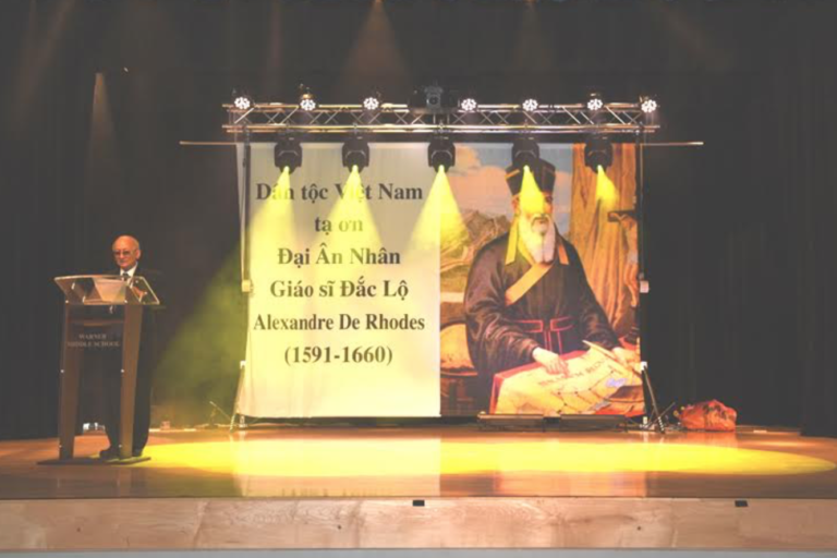 Alexandre de Rhodes và chữ Quốc Ngữ Bài phát biểu của GS Nguyễn Lý-Tưởng trong Đại Lễ Văn Hóa Tạ Ơn![]() Kính thưa quý vị, Trước hết, tôi xin cám ơn nhà truyền thông Quốc Nam và Ban Tổ Chức cho phép tôi được phát biểu về đề tài “Alexandre de Rhodes và chữ Quốc Ngữ” trước quý vị trong Hội Trường này, ngày hôm nay. Đề tài của tôi trình bày có hai phần: (1) Về cuộc đời hoạt động của Alexandre de Rhodes, người được xem là có công trong việc hình thành chữ Quốc Ngữ mà chúng ta sử dụng ngày hôm nay (2) Tiến trình hình thành chữ Quốc Ngữ theo mẫu tự la tinh… Thời gian trinh bày trong vòng 15 phut nên nội dung chỉ giới hạn trong phạm vi Alexandre de Rhodes và chữ Quốc Ngữ (thời khai sinh) chứ không nói rộng ra về nhiều lãnh vực khác liên quan đến chữ quốc ngữ (trong phạm vi văn học cuối thế kỷ 19 đầu thế kỷ 20) Kính thưa quý vị, Trước khi giới thiệu phần tài liệu có liên quan đến hai vấn đề nêu trên, chúng tôi xin đặt câu hỏi: Chữ Quốc Ngữ là gì? Chúng ta hiểu “chữ Quốc Ngữ” như thế nào? Thi sĩ Tản Đà, được xem là thi bá vào những năm đầu thế kỷ 20, đã hô hào người Việt Nam chúng ta phải học “Chữ Quốc Ngữ” và ông đã gọi Chữ Quốc Ngữ theo mẫu tự la tinh mà ngày nay chúng ta đang sử dụng là “chữ nước ta” nghĩa là chữ của người Việt Nam chúng ta để phân biệt với chữ Hán là chữ của người Tàu (người Hoa) mà tổ tiên chúng ta hàng ngàn năm đã sử dụng. Tản Đà gọi chữ Quốc Ngữ hiện nay là “chữ nước ta”, là “chữ của người Việt Nam” và tất nhiên “chữ Hán” không phải là chữ của người Việt Nam, đó là chữ của người Hoa, người phương Bắc, người Tàu, mà ai cũng biết. Vậy, trước khi có chữ Quốc Ngữ theo mẫu tự la tinh mà chúng ta đang sử dụng thì tổ tiên chúng ta có một thứ chữ nào khác (không phải là chữ Hán) hay không? Tôi xin trả lời dứt khoát là không có (hay nói cách khác là chúng ta chưa tìm ra được bằng chứng chắc chắn đã có một thứ chữ nào khác ngoài chữ Hán được gọi là “chữ nước ta”). Chữ Nôm xuất hiện thời nhà Trần là một thứ chữ được mượn từ chữ Hán, một thứ chữ do nhiều chữ Hán ghép lại, rất rắc rối và chưa được thống nhất. Muốn đọc được chữ Nôm thì phải học chữ Hán trước. Các triều đại Việt Nam đã dùng chữ Hán là văn tự chính thức để dạy cho dân, để thi cử, để viết sách vở, ghi chép lịch sử và văn tự có giá trị luật pháp (nghĩa là văn tự viết bằng chữ Hán mới có giá trị luật pháp: ví dụ viết một giấy vay nợ, viết một giấy bán nhà cửa, đất ruộng, bán trâu bò,v.v…đều phải viết bằng chữ Hán…Các công văn, giấy tờ, thông báo,v.v. nói chung là giấy tờ hành chánh từ vua quan phổ biến cho dân hay từ dân trình bày lên vua quan,v.v…đều viết bằng chữ Hán. Dân học chữ Hán, thi cử bằng chữ Hán…Nhà nước tuyển chọn nhân tài ra làm việc trong bộ máy hành chánh của quốc gia (xưa gọi là làm quan giúp dân, giúp nước) đều căn cứ theo trình độ chữ Hán của người đó. Ông Tản Đà Nguyễn Khắc Hiếu (1889-1939) là một nhà Nho, học chữ Hán, viết văn, làm thơ bằng chữ Hán, lều chõng đi thi, bài thi phải viết bằng chữ Hán…Khoa thi cuối cùng tại Miền Bắc vào những thập niên đầu của thế kỷ 20 , ông không đậu được cử nhân. Lúc đó phong trào học chữ quốc ngữ, nhà nước mở trường dạy chữ Quốc Ngữ, ông học chữ Quốc Ngữ (theo mẫu tự la tinh), ông bắt đầu viết văn, làm thơ bằng chữ Quốc Ngữ, (bút hiệu Tản Đà 1916) ông hô hào học chữ Quốc Ngữ. Người chịu khó học, chỉ vài tuần là đọc được; đọc được thì viết được, chữ gì cũng viết được, viết theo lối phiên âm, đồng âm mà khác nghĩa. Nhưng người Việt Nam chúng ta đều hiểu được hết. Nó khác với chữ Hán mà ông Tản Đà đã bỏ ra cả chục năm mới đọc được, viết được, hiểu được, vì mỗi chứ viết khác nhau, đồng âm mà dị nghĩa. Công phu học chữ Hán đến ngoài 20 tuổi mà đi thi không đậu. Bây giờ, ông học chữ Quốc Ngữ, thấy học quá nhanh, quá tiện lợi cho người Việt Nam chúng ta, nên ông hô hào: “Chữ Quốc Ngữ, Chữ Nước ta Con cái nhà Đều phải học…” Kính thưa quý vị, Vừa rồi, tôi đã nói về ý nghĩa chữ Quốc Ngữ theo định nghĩa của Ông Tản Đà Nguyễn Khắc Hiếu mà ai cũng đồng ý đó là chữ nước ta, chữ của người Việt Nam. Vậy ai là người đã đặt ra chữ Quốc Ngữ mà chúng ta đang sử dụng hiện nay? I. Cuộc đời hoạt động của Alexandre de Rhodes: Nhiều người cho rằng chính Alexandre e Rhodes là người đặt ra chữ Quốc Ngữ Việt Nam vì họ căn cứ vào hai tác phẩm đầu tiên xuất bản tại Roma vào năm 1651 tác giả là Alexandre de Rhodes: đó là cuốn Từ Điển Việt-Bồ-La và cuốn Phép Giảng Tám Ngày Cho Kẻ Muốn Chịu Phép Rửa Tội Mà Vào Đạo Thánh Đức Chúa Trời. Xin nhắc lại, trước Alexandre de Rhodes, chưa có tác giả nào viết thành sách vở bằ