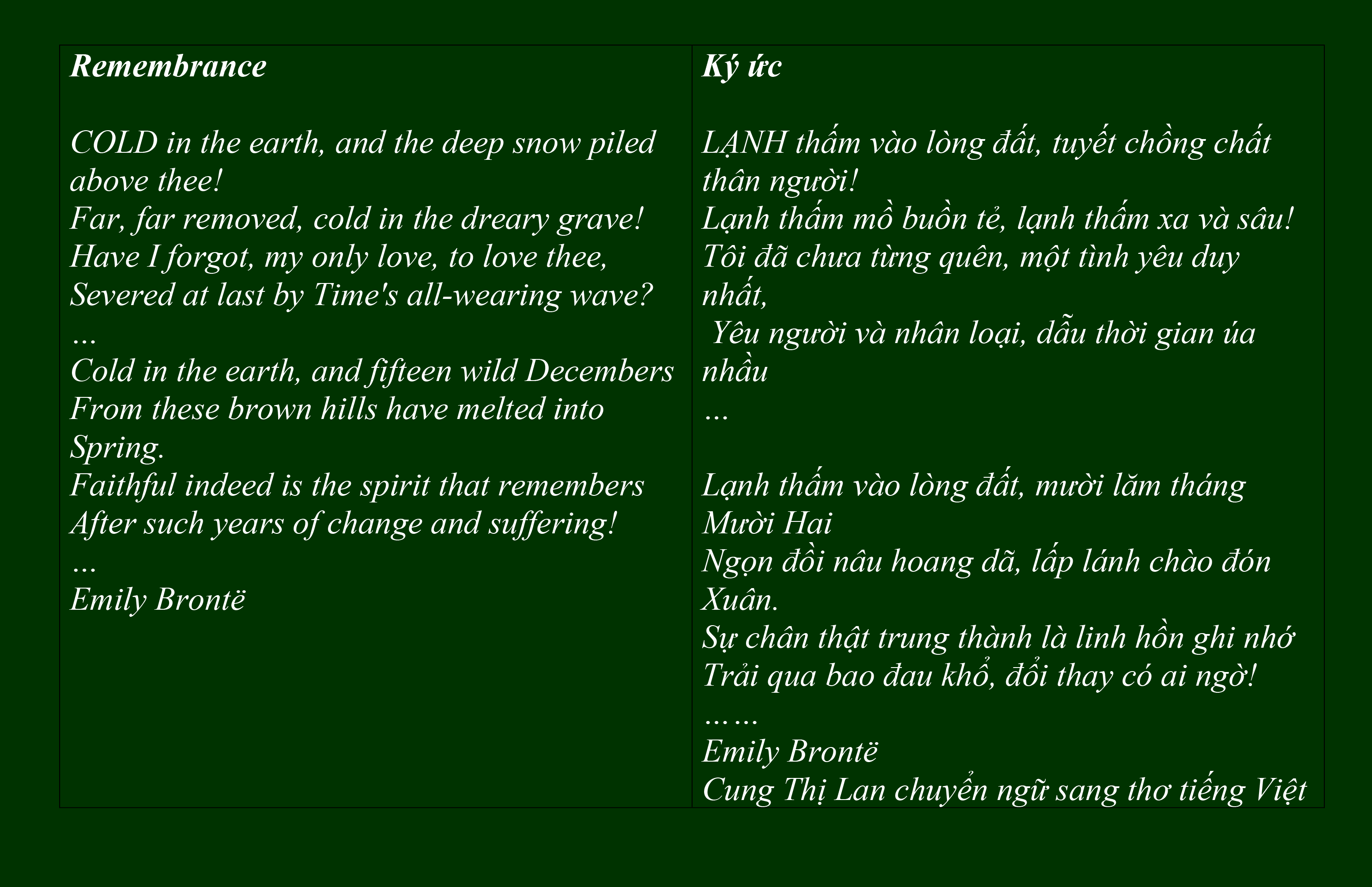 Ba nữ tiểu thuyết gia nhà Brontë: Bi kịch đời sống đã ảnh hưởng đến những cuốn tiểu thuyết nổi tiếng– Cung Thị Lan![]() Tôi thường ao ước đến nước Anh, Anh Quốc chỉ vì một lý do duy nhất là được viếng mộ ba chị em nữ tiểu thuyết gia nổi tiếng của gia đình Brontë. Tôi đã lên kế hoạch nhiều lần; tuy nhiên, vì công việc bận rộn không dứt và tiếp đó là đại dịch Covid, dự định đành hoãn lại từ năm này qua năm khác. Vào tháng chín năm 2024, nhân dịp tham dự Đại Hội Văn Bút Quốc Tế lần thứ 90 từ ngày 23 đến ngày 27 tại Oxford, tôi đã cố gắng thực hiện nguyện vọng của mình. Sở dĩ tôi muốn viếng mộ của ba nữ tiểu thuyết gia Charlotte Brontë, tác giả cuốn Jane Eyre, Emily Brontë tác giả cuốn Wuthering Heights(1847) và Anne Brontë tác giả cuốn Agnes Grey(1847)và The Tenant of Wildfell Hall (1848) vì tôi muốn tỏ lòng kính mến và ngưỡng mộ sự tài ba của ba chị em nữ tiểu thuyết gia nổi tiếng của Vương Quốc Anh. Nhưng tôi đã không ngờ trong chuyến viếng Nhà Xứ của Mục Sư Brontë, nay là Bảo Tàng viện Brontë, tôi biết khá nhiều điều thú vị về thân thế, gia đình, tình yêu, và hoàn cảnh sống của ba chị em nữ sĩ tài hoa bạc mệnh. Đồng thời, hiểu rõ hơn về những vấn đề ảnh hưởng đến sự ra đời của những cuốn tiểu thuyết nổi tiếng của họ. ![]() Sáu giờ sáng ngày thứ bảy 28 tháng 9 năm 2024, vợ chồng chúng tôi lấy tắc xi từ khách sạn London đến nhà ga Paddington để kịp đáp chuyến tàu hỏa về miền Đông Bắc LNER Train (Line North East Rail Train) khởi hành vào lúc 7 giờ 30 sáng để đến ga Leeds. Từ ga Leeds chúng tôi tiếp tục đón chuyến xe lửa khác đến ga Keighley. Chúng tôi đã mất hơn ba tiếng đồng hồ khi dùng phương tiện xe lửa và mất thêm nửa giờ đi tắc xi từ nhà ga Keighley đến Haworth. ![]() Nhà Mục Sư Brontë tọa lạc ở điểm cao nhất của ngôi làng Haworth nơi có những căn nhà san sát với những hàng cây bao quanh. Cấu trúc của ngôi làng dù đã hơn một thế kỷ rưỡi, kể từ khi Mục Sư Patrick Brontë và vợ con ông đến sinh sống ở đây vào năm 1820 cho đến nay, vẫn không thay đổi. Chỉ có khác là lúc đó, đa số người dân ở vùng này làm việc tại nhà bằng nghề chải len cho các nhà máy kéo sợi. Và nghề dệt vải là nghề chính của họ. Ngôi làng không có cống thoát nước, và vị trí nghĩa địa nằm trên đỉnh đồi với những tấm bia mộ bằng phẳng nằm ngang trên các thi thể đã khiến nguồn cung cấp nước cho cả ngôi làng đều bị ô nhiễm. Do điều kiện làm việc không thích hợp và điều kiện vệ sinh không lành mạnh, trung bình tuổi thọ ở nơi đây rất thấp. Tuổi thọ trung bình từ hai mươi lăm đến ba mươi tuổi. Các chị em nhà Brontë có lẽ đã chứng kiến khu nghĩa địa chật kín thi thể của bạn bè và người quen của họ dưới những tấm bia hùng vĩ trong khu nghĩa địa gần đó. Một nơi dường như thống trị khung cảnh của ngôi làng. ![]() Khi đến nơi đây, tôi đã có dịp hình dung được hoàn cảnh sống mà các nữ văn sĩ Charlotte, Emily và Anne trải qua khi họ viết văn, làm thơ. Những cuốn tiểu thuyết có lẽ đã mang lại cho họ niềm vui và giải tỏa phần nào về những u uất và khó khăn mà họ phải vượt qua khi sống ở nơi này.Và có lẽ ba chị em tiểu thuyết gia nổi tiếng này không ngờ qua bao nhiêu năm tháng, những câu chuyện mà họ xây dựng từ hoàn cảnh sống, từ những nhân vật thật và trí tưởng tượng, đã truyền cảm hứng cho độc giả đến tận hôm nay. ![]() ![]() Khi nói về chị em ba nữ tiểu thuyết gia Charlotte Brontë, Emily Brontë and Anne Brontë, chúng ta nên bắt đầu câu chuyện về người cha đáng kính của họ, mục sư Patrick Brontë. Mục sư Patrick Brontë là con trai cả của mười người con trong gia đình nghèo, quê ở Ái Nhĩ Lan.Vì sinh vào ngày thánh Patrick năm 1777 nên ông được đặt tên là Patrick. Cha ông Patrick là người Tin Lành và mẹ ông là người Công Giáo. Nhờ vận may, ông được học bổng vào trường Thần Học St John’s College Cambridge, nơi xây dựng sự nghiệp trong nhà thờ cho sinh viên sau khi họ ra trường. Đây là thành tích nổi bật đáng kể đối với người gốc Ái Nhĩ Lan xuất thân từ gia đình đông con và chật vật. Tại trường Cambridge, họ Brontë lần đầu tiên xuất hiện khi chàng thanh niên với tên Patrick Brunty nay đổi thành Patrick Brontë. Không ai rõ lý do Patrick đổi họ từ Brunty thành Brontë. Ông đổi hai nguyên âm u,y thành o,e. Có thể do lòng ngưỡng mộ của Patrick đối với Horatio Nelson, người đảm nhận tước hiệu Công tước xứ Brontë. Là người yêu thích văn chương, Patrick Brontë xuất bản nhiều tập thơ như tập thơ Những Suy Tư trong buổi tối Mùa Đông(Winter Evening Thoughts- năm 1810) có 256 dòng và Tuyển Tập những vần thơ đạo đức (a collection of moral verses, and Cottage Poems) vào năm1811. Ông cũng đã tận dụng nhiều cơ hội để trở thành giám tuyển ở một số giáo xứ và phát triển sự nghiệp phục vụ nhà thờ nhiều hơn nữa. Năm 1809, ôn