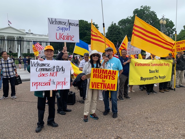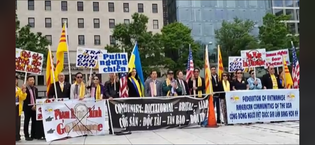 | Biểu tình chống thủ tướng CSVN Phạm Minh Chính trong thủ đô Washington DC Đào Hiếu Thảo Chiều thứ năm 12 tháng 5 năm 2022, Tổng Thống Joe Biden đón tiếp cấp lãnh đạo ASEAN ( Hiệp Hội Các Quốc Gia Đông Nam Á) tại Tòa Bạch Ốc, trong số đó có Thủ Tướng Cộng Sản Việt Nam Phạm Minh Chính. ![]() Khi nhận thông tin này, lúc 5 giờ chiều một cuộc biểu tình được cấp tốc tổ chức, tập họp tại công viên La Fayette trước Bạch Cung. Ban Điều Hợp quy tụ một số nhân sĩ Việt Nam đến từ nhiều tiểu bang Hoa Kỳ. Mạng lưới an ninh được tăng cường cẩn mật, rào chắn dày đặc, đoàn biểu tình phải đứng rất xa cổng chính Tòa Bạch Ốc. ![]() Đồng hương giương cao quốc kỳ Việt Nam Cộng Hòa, trưng các biểu ngữ mang nội dung lên án Hà Nội buôn dân, bán nước, đàn áp dân chủ, chà đạp nhân quyền và hô vang khẩu hiệu chống đối quyết liệt sự hiện diện của Phạm Minh Chính đến họp thượng đỉnh Hoa Kỳ-ASEAN. Khi biểu tình bắt đầu, trời đổ một trận mưa mây nặng hột, không bao lâu, nắng lại lên cao lúc ấy đoàn người Miến Điện đến sát nhập và mạnh mẽ lên tiếng ủng hộ cuộc đấu tranh chính đáng của Người Việt Quốc Gia cũng như của chính họ chống độc tài, quân phiệt. Dù thời gian cấp bách, tập hợp ít người vì là ngày làm việc trong tuần nhưng kết quả rất phấn khởi và hẹn nhau sẽ trở lại ngày mai thứ sáu để “dàn chào” Phạm Minh Chính đông đủ hơn. Cuộc biểu tình kết thúc lúc 6 giờ chiều. Lúc 11 giờ sáng thứ sáu 13 tháng 5, nhóm biểu tình trở lại công viên Lafayette, số người tham gia tăng bội phần vì các đồng hương đến từ nhiều tiểu bang Hoa Kỳ và Canada đã hiện diện. ![]() Tin thời tiết là sẽ có mưa rải rác trong ngày, may thay bầu trời luôn nắng và mát. Sau phát biểu của đại diện các tổ chức, hội đoàn hô vang khẩu hiệu chống Phạm Minh Chính và tập đoàn lãnh đạo Hà Nội. Rất bất ngờ đoàn biểu tình, trong trật tự được phép tuần hành nhiều vòng và xếp hàng sát rào sắt của Tòa Bạch Ốc, có thể vì thượng đỉnh Hoa Kỳ-ASEAN được dời đến một địa điểm khác để hội họp với Phó Tổng Thống Kamala Harris. Vậy là thứ sáu 13 không phải là ngày đáng ngại và nên tránh theo như truyền thuyết xưa nay. Cuộc biểu tình kết thúc lúc một giờ trưa. Nhớ lại những năm trước đây, để tránh né đoàn biểu tình của Cộng Đồng Người Việt Quốc Gia dàn hàng ngang ngay trước Tòa Bạch Ốc với Cờ Vàng và biểu ngữ chống Việt Cộng rợp trời, không ngớt hô khẩu hiệu “Đả đảo cộng sản”… vang dội, mỗi khi đến Hoa Thịnh Đốn hội họp lãnh đạo của Hà Nội như: Phan Văn Khải, Nguyễn Tấn Dũng, Trương Tấn Sang, Nguyễn Minh Triết, Nguyễn Phú Trọng cùng đoàn tùy tùng đều dùng cửa hậu vào Bạch Cung. Năm 2007 tại Asia Foundation và Diễn Đàn Liên Hiệp Quốc ở New York, phái đoàn Nguyễn Minh Triết cũng lặng lẽ vào cổng sau vì đoàn biểu tình hùng hậu với Cờ Vàng phất phới đã án ngữ lối vào chính của các cơ quan quốc tế này. Sau hai lần biểu tình trước Tòa Bạch Ốc vào chiều thứ năm 12 tháng 5 và sáng thứ sáu 13 tháng 5/2022 của các đồng hương đến từ nhiều tiểu bang Hoa Kỳ và Canada; vào lúc 1 giờ trưa thứ sáu, Cộng Đồng Người Việt Quốc Gia Liên Bang Hoa Kỳ tổ chức cuộc tập hợp tại Freedom Plaza, cách Bạch Cung không xa để phản đối sự có mặt của phái đoàn VC tại thủ đô nước Mỹ. ![]() Chương trình khai mạc với lễ chào quốc kỳ Hoa Kỳ, Việt Nam Cộng Hòa và phút mặc niệm. Sau khi giới thiệu thành viên Ban Tổ Chức và các phái đoàn từ xa về tham gia biểu tình phản đối Thủ Tướng CSVN Phạm Minh Chính là phát biểu của chủ tịch Hội Đồng Đại Biểu, Hội Đồng Chấp Hành, Trưởng Ban Tổ Chức, Trưởng Ban Điều Hợp, các vị lãnh đạo tinh thần Tin Lành, Hòa Hảo và đại diện Hội Đoàn. Tiếp nối chương trình là Tuyên Cáo của Người Việt Tự Do mạnh mẽ ủng hộ cuộc chiến tự vệ của nhân dân Ukraine quyết tâm chống quân xâm lược Nga. Khách mời góp ý là cô Veronika Mudka, Chủ Tịch Tổ Chức “White Ribbon USA” của người Ukraine đến từ California. Dịp này, đại diện Cộng Đồng Người Việt Quốc Gia Liên Bang Hoa Kỳ trao đến cô ngân phiếu 32 ngàn 200 mỹ kim để chuyển về nước giúp những nạn nhân chiến tranh. Xen kẽ với các bài phát biểu, đoàn biểu tình hô vang những khẩu hiệu đả đảo cộng sản độc tài, toàn trị, đòi hỏi Hà Nội ngưng bắt bớ, cầm tù những tù nhân lương tâm, những nhà báo, tôn trọng tự do tôn giáo và quyền làm người. Đồng hương cũng kịch liệt phản đối Tổng Thống Nga Vladimir Putin xâm lược Ukraine, giết hại dã man dân lành vô tội của một nước láng giềng hiền hòa. Diễn tiến và hình ảnh cuộc biểu tình được các cơ quan truyền thông quốc tế: RFA (Radio Free Asia), VOA (Voice of America) và Việt Ngữ: Truyền Hình Việt Nam Hoa Thịnh Đốn, VIETV, SBTN, Thương Mãi Miền Đông VA ghi nhận để phổ biến. Chương tr