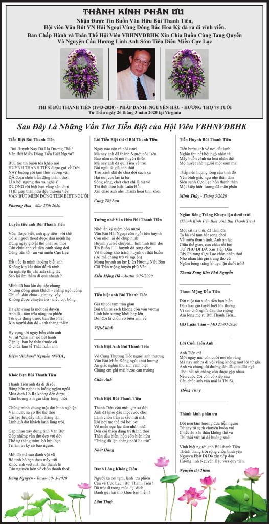 Thêm tác phẩm của thi sĩ Bùi Thanh Tiên trong website VB VĐBHK