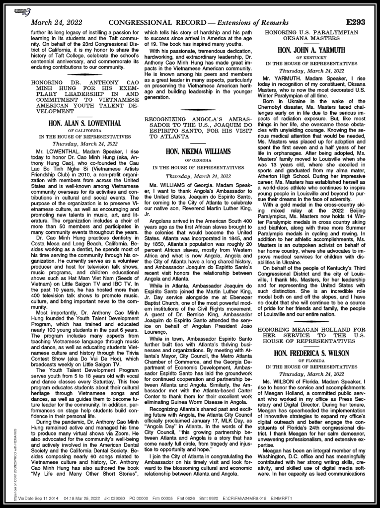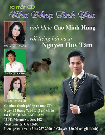 | Tiểu sử Cao Minh Hưng Cao Minh Hưng sinh ngày 5 tháng 4 năm 1969 tại Sài Gòn. Ông là nha sĩ hiện đang hành nghề tại thành phố Costa Mesa, tiểu bang California. Ộng lập gia đình với Ngọc Bích và có 2 người con. Ngoài ra, ông còn là một nhạc sĩ, văn sĩ, thi sĩ cũng như là một võ sư của môn phái Vovinam. Ông được biết đến ở hải ngoại với các nhạc phẩm sáng tác với nhiều thể loại khác nhau cũng như về các bài viết đăng trên nhiều tạp chí và là người dẫn nhiều chương trình talk shows trên TV. Năm 1975, ông theo gia đình từ Sài Gòn về định cư ở Bình Dương. Tháng 9 năm 1988, ông định cư ở Hoa Kỳ. Theo học ngành Sinh Vật Học (Biology) tại Đại học UCLA vào năm 1992. Tốt nghiệp nha khoa tại Loma Linda University – California vào năm 1996. Ông là người đồng sáng lập Câu Lạc Bộ Tình Nghệ Sĩ vào năm 2010 cùng với Nhạc sĩ Anh Bằng. Ông đã thành lập chương trình Đào Tạo và Phát Triển Tài Năng Trẻ từ năm 2016 để hướng dẫn thế hệ trẻ học tiếng Việt và văn hóa Việt qua âm nhạc. Ông tham gia viết cho nhiều tờ báo như Việt Báo, Người Việt, Tạp Chí Thế Giới Phụ Nữ, Việt Tide, Tuyển Tập Đồng Tâm, Đặc San Bình Dương, Tuyển Tập Văn Học Nghệ Thuật Hải Ngoại CLB Tình Nghệ Sĩ, v.v… Từng là phụ tá chủ bút của Văn Đàn Đồng Tâm. Ông đã phát hành tập nhạc “Thắp Sáng Việt Nam” và quyển sách “My Life và Những Câu Chuyện Ngắn“. Ông đã nhận Giải thưởng Danh Dự ”Viết Về Nước Mỹ” của Việt Báo vào năm 2008 và Giải thưởng Tác Giả Xuất Sắc ”Viết Về Nước Mỹ” của Việt Báo vào năm 2010. Ông là người thực hiện và dẫn các chương trình TV như Câu Lạc Bộ Tình Nghệ Sĩ Talk Show trên đài IBC-TV, Show “Tài Năng Trẻ” trên Đài VNA-TV, chương trình ”Nghệ Sĩ Với Cung Đàn” và chương trình ”Hạt Mầm Việt Nam” với mục Đố Vui Để Học hàng tuần phát hình trên Đài Little Saigon TV, v.v. Ông cũng được nhiều người biết đến qua các nhạc phẩm sáng tác với nhiều thể loại như tình ca, quê hương, hùng sử ca, nhạc thiếu nhi, v.v. Với những đóng góp tích cực trong lĩnh vực văn hóa và xã hội cho cộng đồng, ông đã được trao bằng vinh danh “Congressional Record” của Quốc Hội Hoa Kỳ vào tháng 3 năm 2022 do Dân Biểu Liên Bang Hoa Kỳ Alan Lowenthal đại diện trao tặng, cũng như bằng vinh danh “Nhân Vật Lãnh Đạo Cộng Đồng” (Leadership Award) do Thượng Nghị Sĩ Tiểu Bang California Tom Umberg trao tặng vào tháng 5 năm 2022. Website: http://www.CaoMinhHung.com Địa chỉ email: anthonyhungcao@gmail.com |