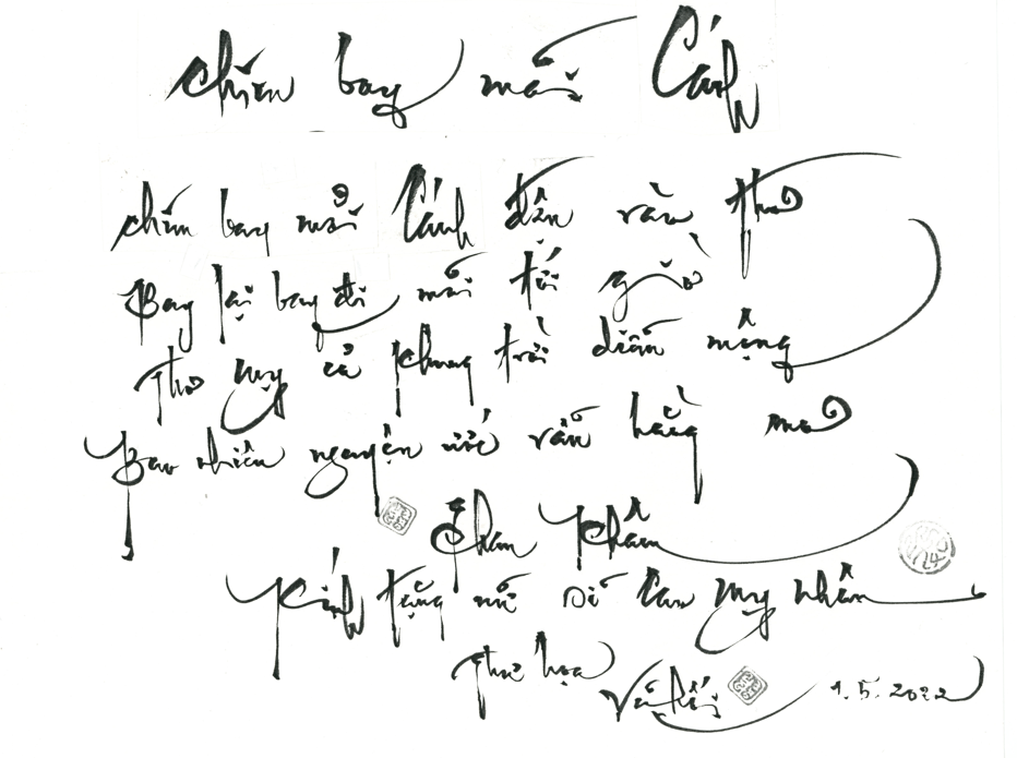 CHIM BAY MỎI CÁNH Làm sao em sống được lâu Để yêu anh tới bạc đầu mới thôi Sống lâu thì chắc được rồi Nhưng yêu thì phải hỏi trời nên không Bởi trời cho trăm mùa đông Làm sao tránh khỏi bão giông tình trường Tình mình như khói như sương Trăm năm là đủ yêu thương trọn đời Nhưng anh không thốt nên lời Bởi trong ngôn ngữ tuyệt vời thiết tha Giữa trời mây nước bao la Chim bay mỏi cánh vẫn là đứng yên Nói rằng : ” anh rất yêu em “ Nghe như có vẻ muộn phiền trong thơ Vào ra phong thái ngẩn ngơ Nên thôi cũng chẳng ước mơ sống già … CAO MỴ NHÂN |