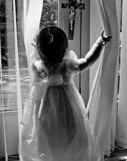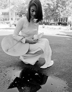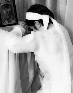 1.Trong trắng là tên của tấm hình có một em bé mặc áo đầm trắng bằng lụa mềm đang vén màn nhìn tượng chúa Jesus. Trong trắng là đặc tính tiêu biểu của cô bé nhỏ Việt Nam trước năm 1975. Là trẻ con, cô bé nào cũng vâng lời cha mẹ. Rất nhiều cô bé tuân theo cha mẹ rửa tội thành người Công giáo hay quy y thành Phật tử trong thời thơ ấu.