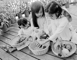 2. Ngây thơ là tiêu đề của tấm hình của ba em bé đang chơi trò chơi buôn bán. Nội dung tấm hình thể hiện rõ tính cách của các em bé gái trong độ tuổi thiếu niên. Ở lứa tuổi này, các em thường thích chơi những trò chơi giả bộ như chăm sóc em bé, nấu ăn, buôn bán hay dạy học. Những trò chơi này xuất phát từ sự quan sát bà và mẹ. Đây là tính cách đặc trưng của người phụ nữ đảm đang trong tương lai.