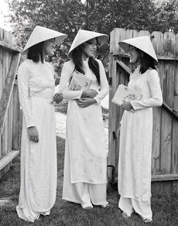 3. Vô tư và hồn nhiên được thể hiện trong hình ảnh ba cô gái đội nón lá, mặc áo dài trắng tay cầm tập vở đang trò chuyện một cách hồn nhiên. Tấm hình đưa người xem về thời gian mà nữ sinh chỉ biết bàn về sách vở học hành, điểm cao điểm kém.