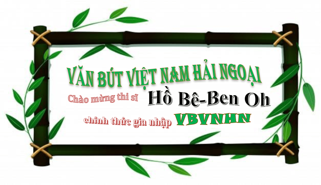 Thay mặt toàn thể Hội Viên VBVNHNVĐBHK chào đón Thi Sĩ BEN OH gia nhập VĂN BÚT VN HẢI NGOẠI. Thân mến Hồng Thủy |