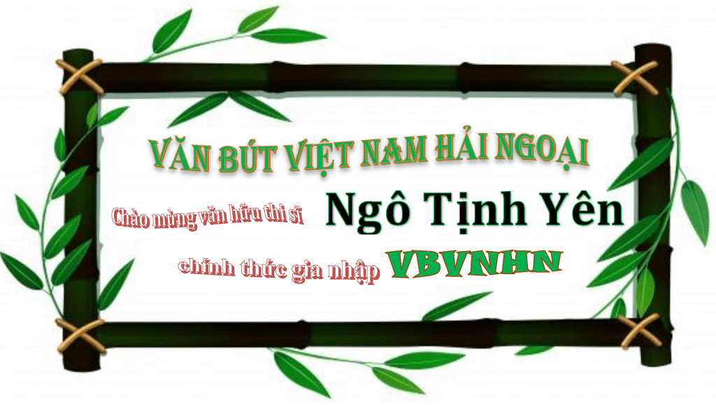 | Chào mừng thi sĩ Ngô Tịnh Yên gia nhập Văn Bút Việt Nam Hải Ngoại. Mong đón đọc thêm những tác phẩm của anh. Chào mừng, Văn Duy Tùng |