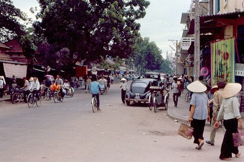 Ngã tư Độc Lập, Phương Câu, Phan Bội Châu và Sinh Trung Nhà sách Nguyễn Lê góc cua Phan Bội Châu và Sinh Trung) đối diện tiệm vàng Mỹ Kim( góc cua Phương Câu và Phan Bội Châu) Đường Tăng Bạt Hổ là một trong những con đường mở rộng buôn bán từ khu chợ Đầm của những người bán lẻ ở vỉa hè. Vào khoảng năm 1964- 1965 đường Tăng Bạt Hổ rất lầy lội và có nhiều ổ gà nhưng là đoạn đường mà những người bán lẻ đón khách đi xe đạp hay xe máy ngang qua sau khi đi làm về thay vì phải vào hàng rau đậu, tôm cá của khu chợ vuông mua sắm. Chị Cúc và tôi mua sỉ (gọi là mua sa cạ) từ những vườn rau trên Thành rồi bán lẻ ở đường Tăng Bạt Hổ từ trưa đến chiều tối. Có nhiều hàng rau san sát Tăng Bạt Hổ nên hai rổ rau chúng tôi thường bị ế. Những người lớn buôn bán thường xuyên có kinh nghiệm, không cho hai đứa tôi một lên chín, một lên mười cơ hội tranh giành chuyện kiếm lời. Người đi chợ thường mua tất cả các món họ cần như đồ nấu chua, đậu, nấm, hành, ớt, dưa leo, sà lách, rau thơm cùng một lúc tại một chỗ cho tiện chứ ít khi mua riêng lẻ từng thứ từ các hàng khác nhau. Chán ngán với cảnh ế ẩm, chị Cúc và tôi bàn tính “bán đổ bán tháo” dù phải lỗ công. Hai đứa rủ nhau nhặt sạch hết tất cả các loại rau từ sà lách đến các loại rau thơm và cả rau muống rồi trộn chung lại bán rẻ cho mau hết hàng. Hai chị em tôi chỉ muốn dọn gọn các mớ rau không ngờ hai rổ rau với đủ loại sà lách, húng, quế, rau răm, ngò và rau muống đầy hấp dẫn đã khơi sự tò mò những người đi ngang qua hàng. Nhiều người dừng lại hỏi chúng tôi bán ra sao. Hai đứa tôi nói là chúng tôi bán năm ba đồng tuỳ người mua. Hễ đưa chúng tôi bao nhiêu tiền thì chúng tôi sẽ hốt vào lá chuối gói bán, nhiều ít tuỳ họ muốn. Nghe thế người mua đồng ý mua ngay. Mừng rỡ với cảnh người người nô nức mua loại “rau trộn”, tôi mới nghiệm ra là món “rau trộn” của chúng tôi giúp những người nội trợ đỡ tốn thời gian chuẩn bị khi nấu cơm chiều. Chiều hôm đó chúng tôi bán hết hàng thật sớm và có lời. Đắc ý với sự thành công, chị Cúc và tôi tiếp tục cách nhặt sạch các loại rau, chẻ rau muống rồi trộn chung thành rau trộn để bán. Vì thấy chúng tôi bán rau có lời, em gái tôi, cũng tên Cúc, thích thú xách rổ theo chúng tôi bán phụ. Sau mùa hè năm ấy hai chị em tôi có chút tiền phụ má. Nhưng, mùa hè của những năm kế tiếp, hai chị em tôi ngưng bán rau vì chị Cúc không bán rau nữa. Chị phải ở nhà trông vườn và làm lúa cho gia đình dì dượng Chín ở Bình Cang. Còn em gái tôi thì tuyệt đối không đi bán với tôi vì có lần nó bưng rổ ngang qua khu vườn nhà nội, bị bác gái tôi kéo lại la “Bây giờ con muốn đi học hay chỉ đi muốn đi buôn bán giống má? Buôn bán như má con làm sao học cho nên?” Nó nghe bác gái nói có lý nên nghỉ luôn. Tôi ngừng bán rau nhưng vẫn tiếp tục theo má tôi buôn bán. Vì tôi thường ra khỏi cổng nhà nội từ tờ mờ sáng để theo má đến bến xe ngựa hay bến xe lam mua hàng từ những người ở Thành xuống, tôi không bị bác gái ngăn cản như em tôi. Đến các bến xe, trong lúc má tôi đón hàng tìm mua cam quýt thì tôi tìm mua bưởi. Sở dĩ tôi mua bưởi vì bưởi rẻ hơn cam quýt và ít có người mua. Cam và quýt là loại trái cây người mua thường đơm cúng trong khi bưởi là loại trái cây chỉ để ăn vặt. Người bán lẻ cam quýt có thể sắp chúng gọn trong rổ rồi dùng gióng và đòn gánh để gánh đi một cách dễ dàng trong lúc người mua bưởi cần có thúng hay giỏ cần xé lớn và thuê xe xích lô hay ba gác chuyển hàng đến các vỉa hè bán lẻ. Vì quyết chí kiếm tiền giúp má tôi không nản chí. Má tôi biết ý định của tôi nên giúp tôi trả tiền vận chuyển chung cho toàn bộ số hàng của hai mẹ con. Ngày hè tôi thường bán bưởi cạnh những rổ cam quýt của má ở đường Phan Bội Châu trước tiệm bánh Hóa Hưng.