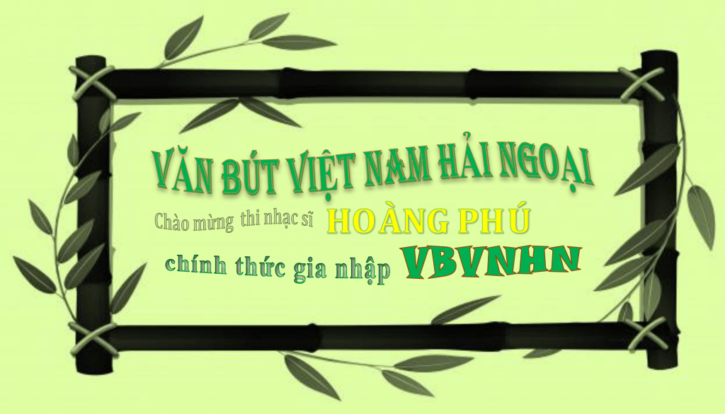 | Xin chào mừng thi nhạc sĩ Hoàng Phú vào gia đình VBVNHN. Cầu mong thi sĩ vui sinh họat với anh chi em Văn Bút và có thêm nhiều sáng tác giá trị Thân mến Ngọc Hạnh |