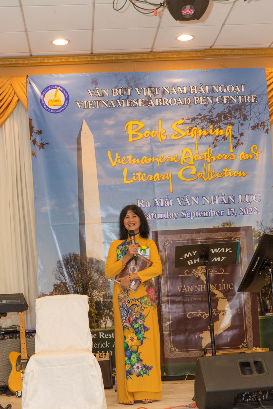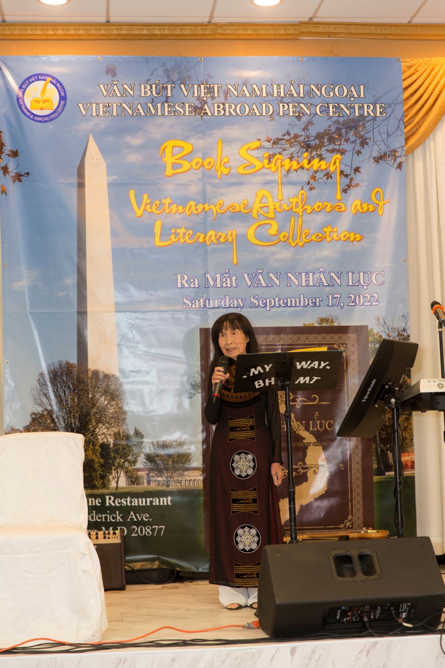 | Chương Trình Ra mắt Văn Nhân Lục Phóng viên Văn Bút Việt Nam Hải Ngoại Buổi ra mắt Văn Nhân Lục của Văn Bút Việt Nam Hải Ngoại được tổ chức vào ngày thứ bảy 17 tháng 9 năm 2022 tại nhà hàng New Fortune thành phố Gaithersburg, Maryland, Hoa Kỳ, với sự hiện diện của trên một trăm quan khách Việt-Mỹ cùng các Văn Hữu đến từ tiểu bang California, Florida và Texas. Theo truyền thống Người Việt Quốc Gia, buổi lễ bắt đầu với nghi thức chào quốc kỳ Hoa Kỳ, Việt Nam Cộng Hòa, Phút Mặc Niệm để tri ân bậc tiền nhân, anh hùng dân tộc, nữ kiệt bất khuất đã có công dựng nước, ngăn chống giặc ngoại xâm, tưởng nhớ các chiến sĩ và đồng bào đã hy sinh vì chánh nghĩa quốc gia, lý tưởng Tự Do, Dân Chủ, Nhân Quyền. Phó Chủ Tịch Đăng Nguyên nói về “Chiếc Ghế Trống” để tỏ lòng kính trọng Văn Thi Hữu, các Vị Chủ Tịch Tiền Nhiệm đã quá vãng: Chủ Tịch Vũ Hoàng Chương, Chủ Tịch Nguyễn Văn Hảo, Chủ Tịch Minh Đức Hoài Trinh, Chủ Tịch Vũ Văn Tùng, Chủ Tịch Thái Anh Duy, Chủ Tịch Lưu Thái Dzo, Chủ Tịch Trần Thy Vân, Văn Hữu Giáo Sư Nguyễn Ngọc Bích, Văn Hữu Trần Tam Tiệp, Văn Hữu Bác Sĩ Khánh Giao/Phùng Văn Hạnh, Văn Hữu Phạm Trọng Lệ, Văn Hữu Song Phương, Văn Hữu Danh Dự Thư Họa Sĩ Vũ Hối. Qua “Chiếc Ghế Trống”,Văn Bút Việt Nam Hải Ngoại cũng tỏ lòng ngưỡng mộ những Nhà Văn, Nhà Báo hiện đang bị cộng sản Việt Nam và các chế độ độc tài, toàn trị cầm tù. Văn Bút Việt Nam Hải Ngoại tiếp tục đồng hành và sát cánh với Văn Bút Quốc Tế để kiên trì tranh đấu cho họ sớm được tự do thật sự. Sau phần giới thiệu các quan khách Việt Mỹ, đại diện cơ quan phát thanh, truyền hình, báo chí, Văn Thi Hữu từ xa đến, Phó Chủ Tịch Văn Bút Việt Nam Hải Ngoại kiêm Trưởng Khối Văn Nhân Lục Erlinda phát biểu: “Văn Nhân Lục là thành quả tích văn tụ thi trong tiến trình khá dài với minh ý cống hiến quý độc giả bốn phương tác phẩm phản ảnh góc cạnh đặc biệt từ ý tưởng thanh nhã, phong cách thư thái, nụ cười thông cảm, áng văn hài hòa, vần thơ sâu sắc dẫn dắt chân tình của văn thi nhân trong Văn Bút Việt Nam Hải Ngoại.” ![]() Sau đó, Trưởng Khối Văn Nhân Lục Erlinda Thuỳ Linh tặng bản tri ân sự cống hiến giá trị của Chủ tịch Văn Bút Việt Nam Hải Ngoại Cung Thị Lan Tổng thư ký Văn Bút Việt Nam Hải Ngoại Lê Thị Nhị Dịch giả Văn Bút Việt Nam Hải Ngoại Diệm Trân Kratzke và Thủ quỹ VBVNHN Lê Thị Ý Kế đó, Văn Hữu Cung Thị Lan, Chủ Tịch Văn Bút Việt Nam Hải Ngoại trình bày thêm về tiến trình thực hiện Văn Nhân Lục, một kế hoạch được phác họa từ lâu, qua nhiều nhiệm kỳ Chủ Tịch, mãi đến nay mới được “trình làng”. Văn Nhân Lục là ấn phẩm Song Ngữ Anh Việt đầu tiên trong lịch sử Văn Bút Việt Nam Hải Ngoại, là niềm tự hào của Ban Chấp Hành 2021-2023 và là chứng tích thành công của tất cả Văn thi hữu chúng ta trong niềm vui sáng tác và phát triển Văn Chương Việt Nam nơi xứ người. Văn Hữu Cung Thị Lan, Chủ Tịch Văn Bút Việt Nam Hải Ngoại cho biết là đã chu đáo sửa lỗi sai chính tả, trình bày hợp lý và thiết kế bìa sách đẹp. Chủ tịch Cung thị Lan còn chú trọng việc phát hành sớm để kịp đến tay các Văn hữu cao tuổi nhưng không ngờ đã làm một việc rất ý nghĩa, khó quên là Văn Nhân Lục gửi đến một Văn Hữu có ước nguyện đọc nó trong giờ phút cuối đời. Tiếp theo, Phó Chủ Tịch Đăng Nguyên xác định rằng Ban Chấp Hành của các nhiệm kỳ trước đã bàn luận, lên kế hoạch phát hành Văn Nhân Lục nhưng không một Ban Chấp Hành nào có thể thực hiện và cho rằng sự đóng góp vượt bậc của chủ tịch Cung Thị Lan trong việc thực hiện và phát hành Văn Nhân Lục rất đáng kể. ![]() Dịp này, Văn Hữu Tổng Thư Ký Lê Thị Nhị chân thành cám ơn và đọc danh sách các Mạnh Thường Quân bốn phương đã nhiệt thành ủng hộ Ban Tổ Chức Ra Mắt Văn Nhân Lục. ![]() ![]() ![]() Chủ Tịch Cung Thị Lan mời các Hội Viên đến trước sân khấu, chụp hình và hợp ca “Việt Nam-Việt Nam”, nhập tiệc, thưởng thức chương trình văn nghệ chọn lọc do Hoàng Phú, Bảo Huy và Từ Khải phối hợp thực hiện. Chủ Tịch Cung Thị Lan cảm tạ các quan khách Việt-Mỹ, công sự viên, ca, nhạc sĩ, giới truyền thông, trao plaque lưu niệm và tặng hoa đến một số bằng hữu đã tận tình đóng góp công sức trong kế hoạch sáng tạo, in ấn, phổ biến Văn Nhân Lục. Buổi sinh hoạt do hai MC Đào Hiếu Thảo và Thanh Hương Nguyễn Từ điều hợp. Văn Hữu Erlinda Thùy Linh trình bày quốc ca Hoa Kỳ và toàn thể hội trường cùng hát Quốc ca Việt Nam Cộng Hòa. ![]() ![]() ![]() Chương trình ra mắt Văn Nhân Lục hoàn mãn vào lúc 3 giờ trưa sau khi khán thính giả được dịp thưởng thức 16 tiết mục ca, vũ, nhạc, độc tấu đàn Mandoline. |