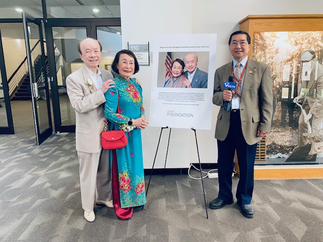 | Hội trường đại học NOVA tên Long Nguyễn và Kimmy Dương Đào Hiếu Thảo Hình Vũ Doanh ![]() Lễ khánh thành hội trường đại học NOVA mang tên ông Long Nguyễn và bà Kimmy Dương được tổ chức vào trưa thứ tư 17 tháng 5, 2023 tại thành phố Annandale, Virginia với sự hiện diện của giới chức hành pháp, lập pháp, doanh nhân, quan khách Việt Nam, Hoa Kỳ và các cơ quan truyền thông. ![]() Tiến Sĩ Diane Mucci Tiến Sĩ Diane Mucci, Khoa Trưởng NOVA Annandale tuyên bố ý nghĩa buổi lễ là để vinh danh ông bà Nguyễn Võ Long & Kimmy Dương, mạnh thường quân thường xuyên tài trợ cho các chương trình phát triển giáo dục, nâng đỡ các sinh viên hiếu học, kém khả năng tài chánh. Hội Trường và khán phòng mang tên ông bà là một trung tâm sinh hoạt hàng năm tiếp nhận trên 40 ngàn người. ![]() Tiến Sĩ Anne Kress Tiến Sĩ Anne Kress, Chủ Tịch Đại Học cộng đồng NOVA (Northern Virgina Community College) chào mừng, giới thiệu quan khách danh dự và nhắc đến những hoạt động đa dạng của ông bà Long Nguyễn, Kimmy Dương trong lãnh vực tin học, doanh thương, khoa học, kỹ thuật đồng thời đóng góp tài chánh dồi dào cho công tác giáo dục, xã hội, từ thiện và cứu trợ tại Việt Nam cũng như ở Hoa Kỳ. Ông bà Long và Kimmy đã trao tặng NOVA ngân khoản trên một triệu đô la để cấp học bổng cho các sinh viên cần mẫn và cũng đã thường xuyên tài trợ các đại học khác khắp Hoa Kỳ. Để ghi ơn hai ân nhân, hội trường và khán phòng mang tên Ông Bà được Tiến Sĩ Anne Kress cùng với bà Kimmy Dương cắt băng khánh thành trong buổi lễ trang trọng này. ![]() Bà Kimmy Dương nhắc lại những ngày đầu gia đình ông bà đến tỵ nạn tại Hoa Kỳ rất khó khăn, kham khổ, gay go trong việc kiếm sống nhưng đã cố gắng vượt qua để có được sự thành đạt ngày nay và bà tin tưởng là ai trong chúng ta cũng có thể làm được như vậy. Những đóng góp của ông bà chính là để bày tỏ lòng biết ơn đối với chính phủ và người dân Hoa Kỳ đã tận tình giúp đỡ hàng triệu người tỵ nạn Việt Nam sau tháng tư năm 1975. ![]() Giáo Sư Kelly Persons Bà Kelly Persons, Giám Đốc Điều Hành Sáng Hội NOVA hướng dẫn quan khách thăm hội trường Long Nguyễn và Kimmy Dương. Bà cũng giới thiệu Trung Tâm Văn Hóa Á-Mỹ-Thái Bình Dương được thành lập vào tháng giêng năm nay, dành cho giáo chức và sinh viên của trường đại học sử dụng. Sau tiệc trà, buổi sinh hoạt hoàn tất vào lúc 2 giờ trưa. NOVA thành lập từ năm 1964 là đại học cộng đồng lớn nhất tiểu bang Virginia, hiện có gần 80 ngàn sinh viên theo học trong số đó có hơn 2 ngàn sinh viên đến từ 180 quốc gia. Trường có sáu cơ sở tại Alexandria, Annandale, Loundon, Manassas, Sprigfield và Woodbridge. Sinh viên có thể hoàn tất 2 năm đầu của chương trình cử nhân và chuyển tiếp lên các trường đại học 4 năm như George Mason, University of Virginia, Virginia Commonwealth University… Lễ mãn khóa tại Đại Học George Mason và trao tặng huy chương cho bà Kimmy Dương ![]() Thống Đốc Virginia Glenn Youngkin Thống Đốc Virginia Glenn Youngkin chủ tọa lễ mãn khóa được tổ chức trọng thể vào sáng thứ năm 18 tháng 5, 2023 tại hội trường EagleBank, Đại Học George Mason thành phố Fairfax với sự hiện diện của hàng ngàn quan khách, giáo chức, sinh viên cùng gia đình và các cơ quan truyền thông. Đây là kỳ tốt nghiệp có đông sinh viên nhất của viện đại học này, kể từ ngày thành lập vào năm 1957. Niên khóa đầu tiên trường chỉ có 17 sinh viên theo học. ![]() Tiến Sĩ Gregory Washington, Viện Trưởng Đại Học George Mason trao huy chương cao quý cho bà Kimmy Dương Dịp này, bà Kimmy Dương, một nhà hảo tâm được trao huy chương danh dự của Đại Học George Mason, mỗi năm chỉ một người được tặng thưởng do sự đóng góp xuất sắc đối với cộng đồng, xã hội và đất nước. Từ khi thành đạt đến nay bà và Phu Quân, Tiến Sĩ Nguyễn Võ Long luôn đóng góp dồi dào trong các công tác giáo dục, xã hội và từ thiện. ![]() Nghi thức khai mạc Chương trình bắt đầu với lễ chào quốc kỳ Hoa Kỳ, anh David Szabo hát quốc ca và toán chào kính danh dự theo lễ nghi quân cách, phát biểu của Tiến Sĩ Gregory Washington, Viện Trưởng Đại Học George Mason, trao huy chương cho bà Kimmy Dương và tặng Thống Đốc Glenn Youngkin bằng Tiến Sĩ Danh Dự. ![]() Thống Đốc Glenn Youngkin chúc mừng các sinh viên tốt nghiệp đại học, cao học và tiến sĩ trong niên khóa này mà tổng số lên đến trên 11 ngàn, đến từ 111 quốc gia và 50 tiểu bang Hoa Kỳ. Ông tuyên bố các tân khoa thành danh này sẽ góp phần đáng kể trong tất cả các lãnh vực từ quốc phòng đến kinh tế, giáo dục, khoa học kỹ thuật, an sinh xã hội tại Hoa Kỳ và trên toàn thế giới. Được biết, ông bà Nguyễn Võ Long và Kimmy Dương đã tặng Đại Học George Mason ngân khoản 5 triệu Mỹ Kim vào năm 2011 và cũng cấp học bổng cho các sinh viên thuộc nhiều đại học khác trên toàn quốc trị giá trên 4 triệu Mỹ Kim. Bà cho biết khi đặt chân tới Hoa Kỳ năm 1975, ông bà 
