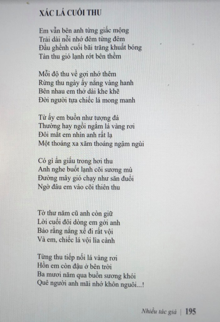 | “Mùa Thu “ và cũng là “ Mùa Tình “, dịu dàng sắc nắng lụa vàng thu , với gió heo may nhè nhẹ mang chút hơi lạnh làm dịu mát hồn người ….Mùa Thu với những cuộc tình đẹp lãng mạn như thơ , với lá thu bắt đầu thay sắc , xanh , vàng , đỏ , và nâu sậm ….. Đẹp quá ! những đôi tình nhân sánh bước bên nhau trên những con đường rực rỡ đủ sắc màu dưới nắng vàng lụa mỏng rừng thu …thơm lừng dạt dào hương yêu thấm đậm…! Có những cuộc tình đẹp duyên , đưa đến đoạn kết rất đẹp , rất hạnh phúc viên mản đi suốt một đời người … Tuy vậy …Mùa thu rồi cũng dần phai , cũng có những cuộc tình rồi héo hắt úa tàn theo từng chiếc lá thu phai cuối mùa ….Rồi cũng có người ngoảnh mặt quay lưng và nhanh chóng quên khi tình đã bay xa , người đã xa người . Tuy vậy , còn có những người tình mãi bàng hoàng nuối tiếc nhớ nhung chất ngất ….những kỷ niệm đẹp khó nguôi quên dù mùa thu đã qua đi …qua đi …! LHMT Xin đưa lên bài thơ: “THU PHAI” để ghi dấu ấn , đồng thời như một an ủi vỗ về những cuộc tình không trọn vẹn cứ mỗi lần rừng thu thay lá, rồi úa vàng hiu hắt như gợi nhớ về “ Tình Thu- Tình Xa , Tình Nhớ , Tình Buồn …” THU PHAI Nhắc mà chi nhớ mà chi Thu xưa héo hắt tà huy luống chiều Tình nào rồi cũng tịch liêu Buồn như vàng lá đăm chiêu cuối mùa Gió heo may rớt tình cờ Gợi buồn một thuở ơ hờ dấu xưa Vẫn là giọt ướt mưa thưa Vần thơ xa lắc , thu và dòng sông Chỉ là thoáng nhớ mông lung Chỉ là khoảng lặng bềnh bồng khói sương Ừ thì ! Tay níu tay buông Bàn tay sấp ngửa hư không trắng ngần Ừ thôi ! Trở giấc mê trầm Quay lưng ngoảnh mặt nhủ thầm,thế thôi! Chỉ là phiêu dạt mây trôi Chút heo hút nắng cuối trời thu phai …! @ LÊ HỮU MÌNH TOÁN – Houston 22 tháng 7 năm 2021 ( Trích Tuyển Tập “ Tình Thơ Mùa Thu “ , nhà xuất bản Nhân Ảnh – Hoa Kỳ 2020 ) – Ảnh minh họa mượn trên net . |