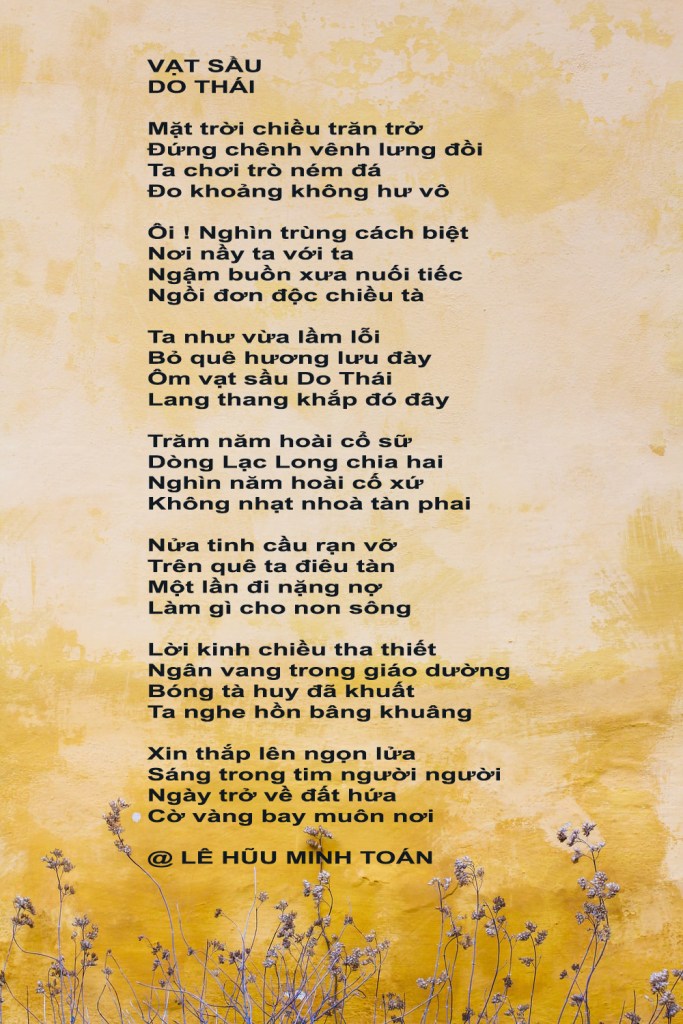 | CUỐi NẺO Cõi thơ ta gầy hơn ngọn cỏ Vạt nắng chiều vàng rụng sắc hương Từng phiến lụa bên trời ngược gió Ru đời nhau dỗ giấc miên trường Ngọn nến già héo hắt sầu vương Buồn treo nghiêng nhịp thở cuối đường Ai đứng đó, bên cầu sinh tử Thắp hồn ta lạc mộng trăm phương Nắng Houston hạ vàng cháy bỏng Phơi lòng nhau mấy nỗi nghiệt oan Cứ thản nhiên gối đầu ngọn sóng Vỗ chân đời mãn nghiệp đa đoan Cứ trơ lì trầm tư đá cuội Cứ tịnh yên giông bão cuộc đời Mặc sóng dữ ồn ào săn đuổi Cuối cuộc người biển lặng trùng khơi… – Houston- 24/ 6/ 2023 @ Lê Hữu Mình Toán |