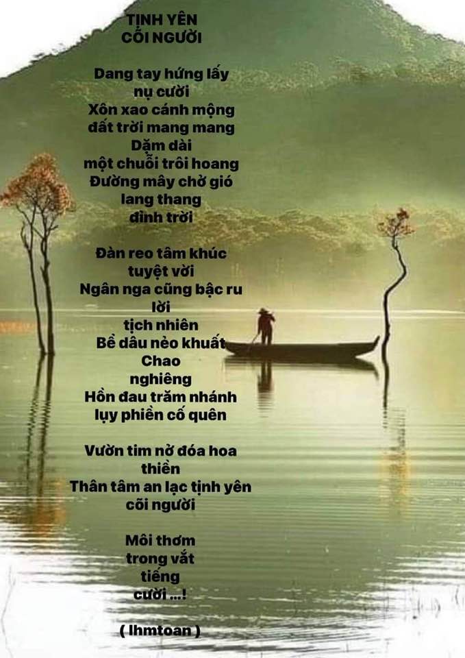 | Rất vui khi bài thơ TÓC HƯƠNG của LHMT vừa được bạn HẠ TRẮNG thực hiện một bức Thi ảnh quá đẹp với cảnh chiều vàng, với cánh vạc bay giữa trời lồng lộng cùng với nét chữ rất nghệ thuật , rất nhẹ nhàng dễ thương . Một bức Thi ảnh minh họa rất rõ nét nội dung bài thơ Lục bát bốn câu này . Xinh thành thật cám ơn bạn Hạ Trắng rất nhiều và xin đưa lên trang FB cá nhân để lưu niệm như một món quà tinh thần bạn đã thực hiện dành cho bài thơ “ Tóc Hương “ này của LHMT. Ghi chú : Hai hôm nay , FB của LHMT bị gặp trở ngại kỹ thuật nên không thể mở FB được vì hình ảnh đưa lên đã Nhấn nút Post gởi đi nhưng vẫn bị frozen cứng trơ không đi chuyển được. Sáng nay dậy sớm , mày mò sao đó tự dưng mở được . Mừng quá ! Sorry các bạn nhé! @ Lê Hữu Minh Toán ( Houston 24/ 4/ 2022) ![]() |