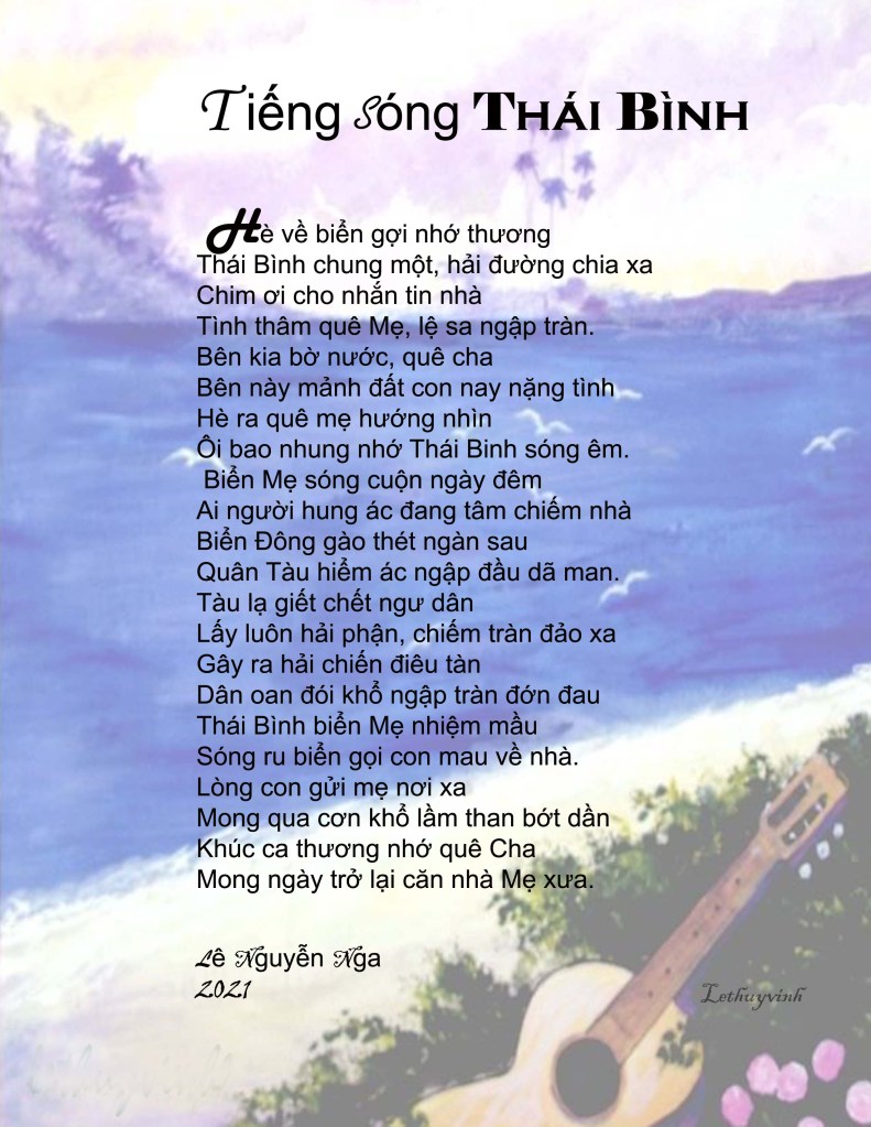 THƯƠNG QUA VIỆT NAM Quê hương còn đó anh ơi Anh về lấy lại giang sơn của mình Chiến tranh thua trận thường tình Về đây xây lại nước mình đẹp hơn Rừng vàng biển bạc đất vườn Ông cha gây dựng trên nguồn rừng xưa Mẹ cha công khó nặng mưa Giặc về cướp đất bán, đưa cho Tàu Chiến binh cải tạo rừng sâu Tuổi thơ bỏ học đi làm gian lao Dân ta khổ cực dài lâu Quan tham giết chết trăm ngàn người dân Dịch về đại nạn mọi đàng Thuốc chúng không có ngập tràn chết oan Dân Nam đuổi sức cơ hàn Mong ai góp sức góp bàn tay thêm Lạy Trời cho thuốc chung liền Cứu người đời bịnh dap tình chờ mong Miếng khi đói gói khi no Giúp nhau gạo thuốc nghĩa so nghìn vàng Em về góp sức cùng anh Cứu quê hương Việt dân lành đợi mong . Lê Nguyễn Nga 2021 |