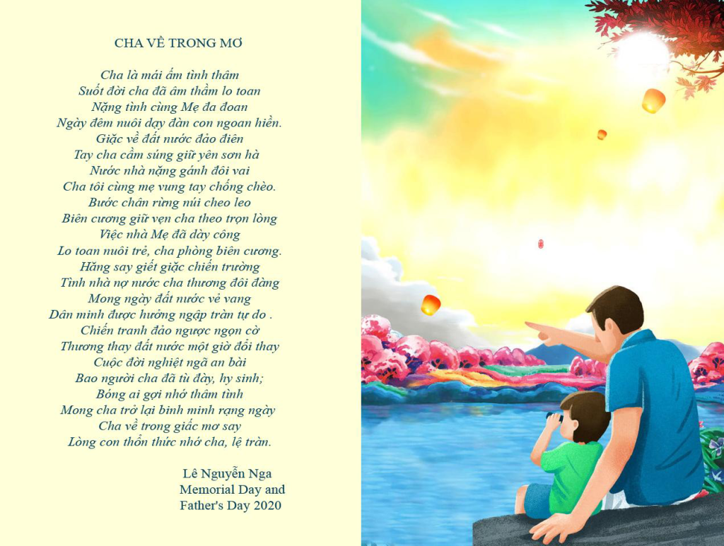 | NHỚ ANH MÙA PHƯỢNG TÍM Cành phượng tím nở ngát trời Dáng em ngồi, mái tóc rối buông lơi Nhớ ngày nào ta chung lối Ấm êm một thuở cuộc đời bên nhau. Đất bằng chuyển sóng cuốn trào Cộng sản gian ác tràn vào miền Nam Chia tay giã biệt lên đàng Quyết tâm chiến đấu dẹp tan giặc thù. Chiến tranh bom đạn mịt mù Tìm về gốc phượng, nhớ nhung bóng chồng Ngày anh lên đàng diệt cộng Hẹn trở về ta chung sống bên nhau. Chiến trường ác liêt thảm sầu Oán thay đất nước đổi màu ác gian Việt cộng giết hại, tham tàng Tóm thâu đất nước ngập tràn đau thương. Anh hùng gặp cảnh đoạn trường Xác thân vùi dập, đau thương não nề Nhớ nhau mong dáng anh về Ôi bao thương nhớ tái tê suốt đời. Tháng năm phượng nở tím trời Lòng em tím mãi cuộc đời vắng anh. Lê Nguyễn Nga Memorial Day 2020 |