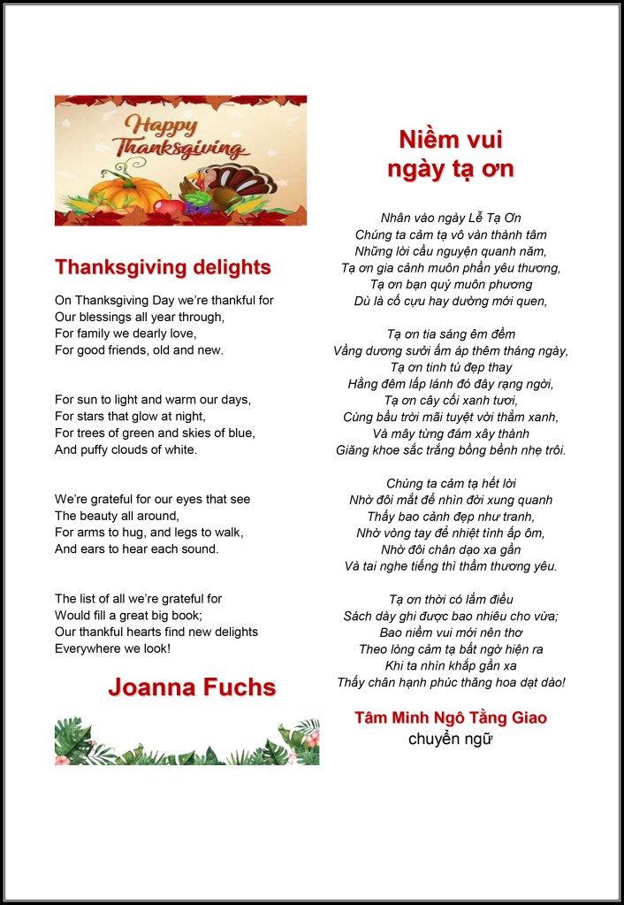 | Trang thơ chuyển ngữ của tác giả Tâm Minh Ngô Tằng Giao |