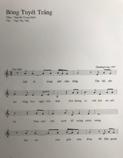 | Bông Tuyết Trắng Anh đi trong phố mùa đông Tìm hái cho em bông hoa ngày sinh nhật Hoa không có biết làm sao anh hái Thấy một trời tuyết đổ xuống mênh mông Sao em sinh giữa mùa đông Để thấy quanh em bông hoa nào cũng buồn Bông tuyết trắng rơi từ trời xa vắng Vỡ tan tành trong tay anh trắng, trắng tay Rồi từ đó mỗi mùa xuân tới Anh chắt chiu từng cánh hoa tươi Dành dụm cho em khi mùa đông tới Kỷ niệm em ngày mới ra đời Kỷ niệm em ngày sinh nhật em NGÔ THY VÂN |