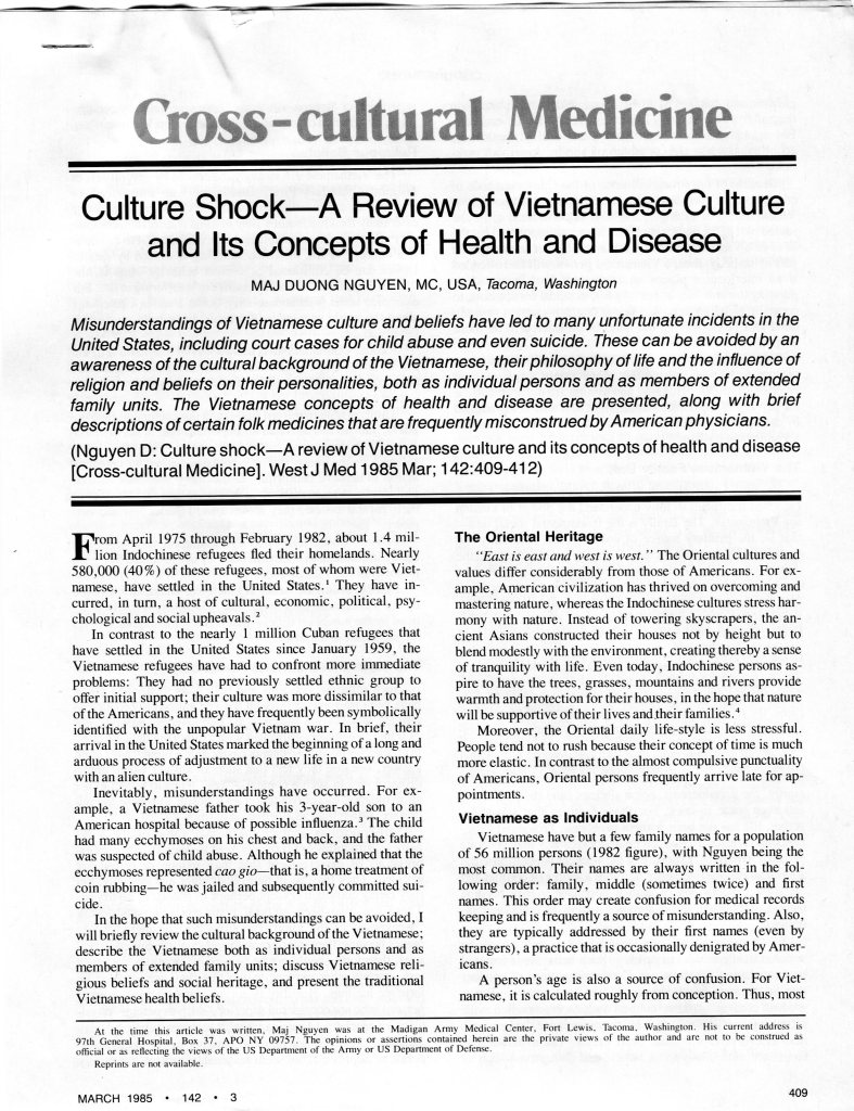 | Culture Shock- A Review of Vietnamese Culture and Its Concepts of Health and Disease- Maj DUONG NGUYEN |