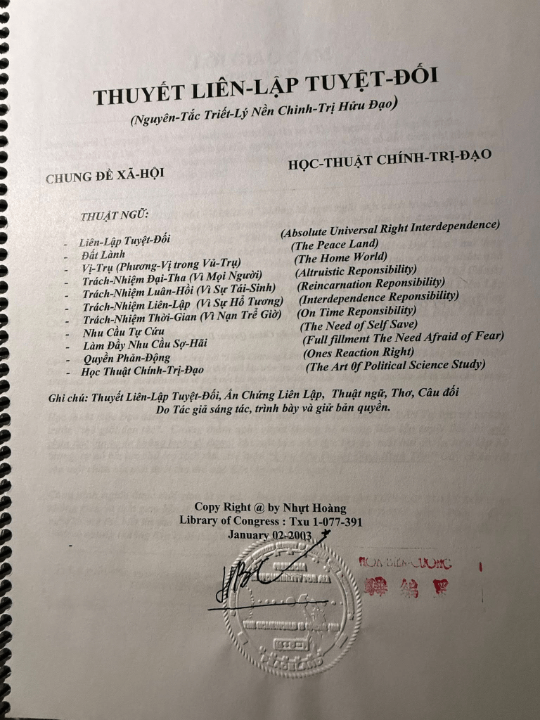 | Tiểu sử Nhựt Hoàng Tên thật là Hoàng Nhu Nhựt- Bút hiệu : Hoa Biên Cương Sanh ngày 20 tháng 6 năm 1945 Tác Phẩm: Học thuyết Liên Lập Tuyệt Đối |
