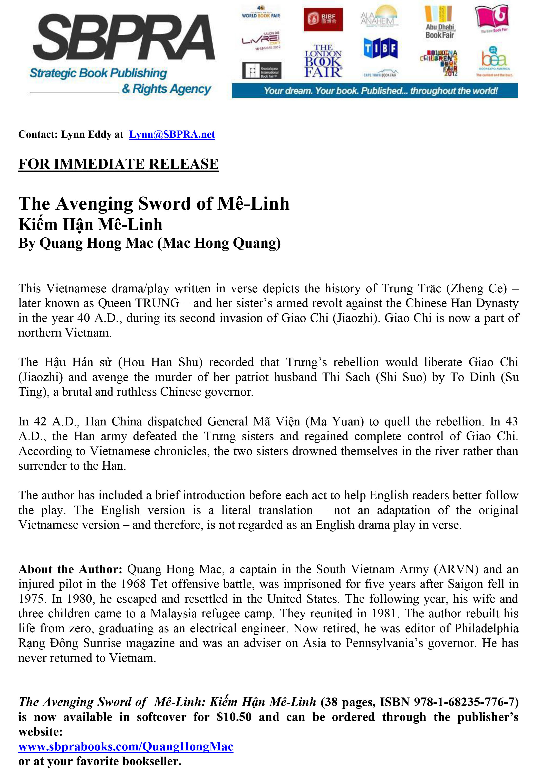 | January 17, 2023 Kính thưa quý Văn hữu VBVNHN Cung Lan xin thay mặt BCH kính gửi quý Văn hữu thông tin mới về buổi Ra Mắt Kịch Thơ “ Kiếm Hận Mê-Linh” của Văn hữu thi sĩ Mạc Hồng Quang. Buổi Ra Mắt Kịch Thơ “ Kiếm Hận Mê-Linh” của Văn hữu thi sĩ Mạc Hồng Quang sẽ dời đến ngày chủ nhật 19/2/2023 tại China Gourmet 2842 Vincent Street Philadelphia, PA 19149. Buổi Ra Mắt Kịch Thơ sẽ bắt đầu đúng 3 giờ chiều nhưng kính mời quý Văn hữu đến sớm để chụp hình làm kỷ niệm với Văn thi sĩ Mạc Hồng Quang Lê Trường Sơn và hàn huyên tâm sự. Vui lòng xem thư của VN thi sĩ Mạc Hồng Quang để biết thêm chi tiết: Dear all honored guests and friends, In order to keep all honored guests to be a good time during the signing drama book. it is requested that all guests who are available to attend our event, please came to our event before 3PM. Sunday, February 19, 2023 China Gourmet 2842 Vincent Street Philadelphia, PA 19149. Please reserve prior January 15, 2023 Thank you so much for your understanding to cooperation with our organization committee. Best regards, Author QuangHongMac hn003661@gmail.com www.SBPRAbooks.com/QuangHongMac ![]() Kính chúc quý Văn hữu và gia đình buổi tối thư giãn và đầm ấm. Kính mến Cung Thị Lan |