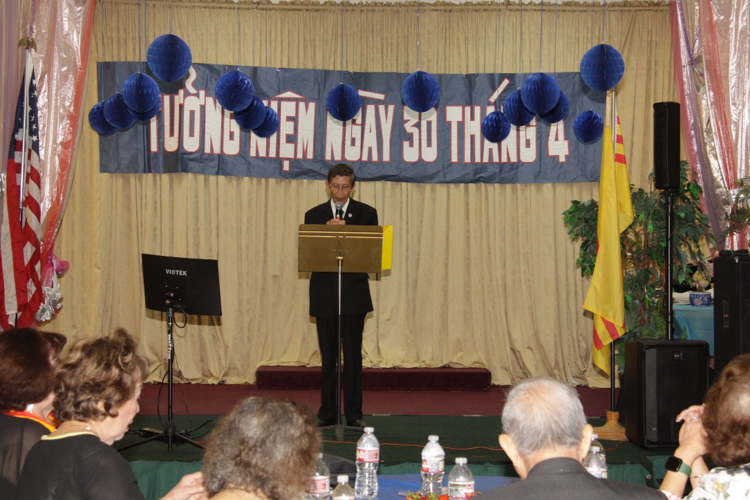 | SƠ LƯỢC TIỂU SỬ NỀN ĐỆ I và ĐỆ II VNCH Kính thưa Quý bậc Trưởng Thượng, quý Quan Khách và Bà con đồng Hương, ![]() Chúng tôi là Cù Hòa Phong, Chủ Tịch VBVN Hải Ngoại/Vùng Nam Hoa Kỳ thuộc Văn Bút Quốc tế, Tiếng Anh gọi là Vietmese Aboad PEN Centre/ Southern U.S.Chapter. Chúng tôi sinh quán tại Bình Định miền Trung Việt Nam, Được Ban Tổ Chức cho phép, và tôi xin được lược qua về Nền Đệ I và Đề II/VNCH và ngày Quốc Hận. cũng như nền Văn Hóa của VNCH, qua sự hiểu biết ít ỏi của bản thân Kính thưa quý vị, tôi vốn sinh ra tại BĐ, theo từ của VC (từ 1945 đến 1954 thuộc liên khu 5 gồm Nam, Ngãi, Bình Phú) dưới sự kiểm soát của Việt Minh tức là CS đông dương, sưu cao, thuế nặng, các Địa Chủ, cường hào đều bị đem ra đấu tố, trong ấy có Cha chúng tôi, rồi sau buổi đấu tố các ngài được tạm tha trong hứa hẹn đóng thuế còn thiếu, phải đóng đủ trong vòng 1 tháng,, trong khi ấy nhà đã bị chúng đào xới trống không, nên quý cụ gồm 19 người bí mật rủ nhau phải trốn khỏi quê hương, từ Bình Định băng rừng vượt suối hơn 2 tuần lễ, đến Vân Canh, Sông Cầu, rồi đến Tuy Hòa thuộc tỉnh Phú Yên, ra khỏi vùng Việt Minh kiểm soát, rồi lần lược đi vào Nha trang. Đến năm 1954 sau hiệp định Geneve,đất nước bị chia đôi, tứ 17 vĩ tuyến tức phía Nam sông Thạch Hãn tức Nam Cầu Hiền Lương đến Mũi Cà Mau thuộc về VNCH, Và quý Cụ nghe tin Ông NĐD sẽ về chấp chánh Thủ Tướng,. Rồi đoàn người lại kéo nhau lần lược vào SG, được chính phủ mới thành lập, cho quý cụ vào ngành Công Dân Vụ kể cả quý cụ dân Bắc di cư, tôi còn nhớ qúy cụ được huấn luyện và được phân bổ tùy theo khả năng mà giữ các chức vũ từ Tỉnh trưởng đến các Quận, Thị Xã, rồi đầu năm 1955 quý cụ đã được phân công về tiếp thu các tỉnh Miền trung, ![]() Ban hợp ca nghi thức khai mạc & văn nghệ. Một góc Hội trường Và nền Đệ I VNCH ra đời sau cuộc trưng cầu dân ý, Thủ Tướng Ngô Đình Diệm trở thành Tổng Thống VNCH, trong thời gian 9 năm hai nhiệm kỳ trị vì, của Cố TT Diệm, dân chúng thật sự an cư lạc nghiệp, thật thanh bình thịnh vượng, cho đến ngày 1/11/63 cố TT NĐD bị nhóm tướng lãnh khố xanh đảo chánh, như quý vị đã biết gồm các tướng thân Pháp, thân Cộng, như Dương Văn Minh, Tôn Thất Đính, Trần Văn Đôn vân vân. Và rồi Xe thiết giáp chở CỐ TT và bào đệ NĐN từ Nhà thờ Cha Tam Chợ Lớn chạy về TTM, bị tên ĐÝ Nguyễn V Nhung sát hại. Sau khi Cố TT Diệm bị sát hại và nền Đệ I CH chấm dứt. và quốc sách ấp chiến lược cũng bị hủy bỏ và rồi HCM có cơ hội thành lập MTGPMN 1960. Trong ảnh Văn Thi Sĩ Cù Hòa Phong. Sau cuộc đảo chánh và giết hại Cố Tổng Thống Ngô Đình Diệm, tướng DVM bị tướng NK chỉnh lý và tướng NK giữ chúc vụ QT, rồi Quốc trưởng Phan Khắc Sửu, sau mấy tháng, quân đội lại giao cho TrungTướng NVT, và rồi Toàn dân bầu cử Tổng Thống và Phó TổngThống liên danh Nguyễn Văn Thiệu, Nguyễn Cao Kỳ thắng cử và nền Đệ II/VNCH ra đời, rồi nhiệm kỳ sau sau 5 năm, liên danh Nguyễn Văn Thiệu và Trần Văn Hương thắng số phiếu rất cao so với Liên Danh Luật Sư Trương Đình Du. ![]() Trong ảnh MC Nguyễn Toàn (sĩ quan không quân) và Cù Hòa Phong nói Quốc sách Ấp Chiến Lược Và rồi Mặt Trận Giải Phóng Miền Nam hoạt động, giết chóc, bắc bờ đày lên núi cao, những thành phần chống đối; Mặc dù vậy nhưng người dân Việt Nam Cộng Hòa vẩn tự do, cơm no áo ấm, với trách nhiệm và bổn phận người công dân được quyền tự do ứng cử và bầu cử. Như các chứ vụ nghị viên, dân biểu, thượng viện và Tổng Thống. Và năm 1975, chính phủ Hoa Kỳ cắt viện trợ, nên Nền đệ II Việt Nam Cộng Hòa bị bức tử, bỡi Tổng Thống Nixon và tên Ngoại Trưởng Kixingger bán Miền Nam cho Tàu Mao, mà dân Việt Nam Cộng Hòa gọi Kixinger là tên tội đồ của Dân Tộc Việt. Và CS Miền Bắc dưới sự chỉ đạo và yểm trợ của Cộng Sản Liên Xô và Tàu Mao xua quân cưỡng chiếm miền nam VN ngày 30/4/1975, với lời tuyên của tên Dương Văn Minh thân Cộng Sản tuyên bố trên đài Phát Thanh Sài Gòn “Quân Đội hãy buông súng đầu hàng vô điều kiện”. trong khi ấy từ ngày 1 tháng 4 đến 30/4 Quân Khu 3 và Quân Khu 4 Cộng Quân chưa chiếm được. nhưng Thủ Tướng Trần Thiện Khiêm và toàn bộ Tổng Tham Mưu do tướng Cao Văn Viên tham mưu trưởng đã bỏ trốn ra Hạm Đội số 7 ở Thái Bình Dương. Thật là nhục nhã cho các hàng tướng Khố Xanh thân Pháp và thân Cộng. 02 Mất Miền Nam Việt Nam, người dân Việt Nam Cộng Hòa gọi là tháng 4 đen, hay là ngày Quốc Hận như hôm nay, quan Khách và bà con chúng ta đến đây để cùng tưởng niệm ngày Quốc Hận và vinh danh các anh linh chiến sĩ Đã hy sinh giữ gìn lý tưởng tự do – dân chủ và nhân quyền cho Miền Nam Việt Nam , đồng thời chúng ta cũng tưởng nhớ quân cán Chính VNCH đã bị tù đày, chết trên non cao nước độc từ bắc chí nam, tưởng nhớ đồng bào vượt tho