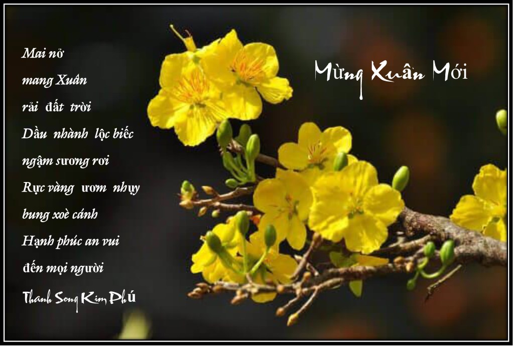 | Lời Chúc Đầu Năm Xin gửi TÌNH YÊU đến từng nhà Chan hoà chiều sớm khúc hoan ca Con trẻ ê a vần sớm tối Ông bà, cha mẹ lòng nở hoa Xin gửi TÌNH YÊU đến từng người Tâm hoa thơm ngát dẫu đơn côi Bác ái, Từ bi lòng rộng mở Hàm tiếu sen hồng mãi đơm môi. Sao Khuê 2-2-2022 |