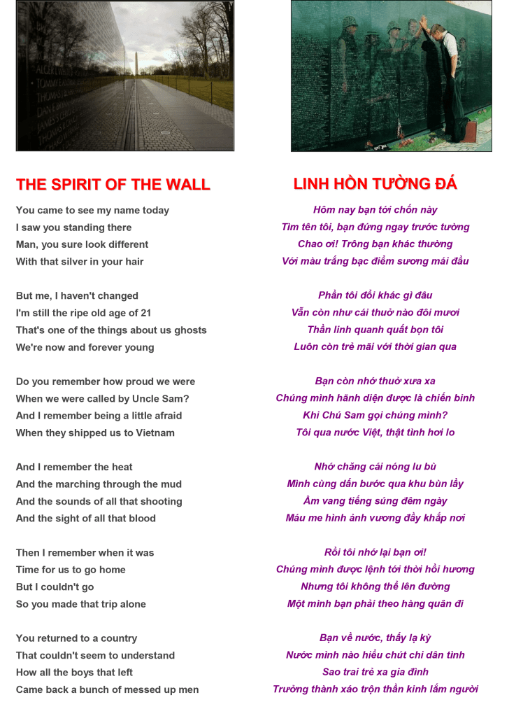 | Lễ Memorial Day Ngày cuối, thứ hai của tháng năm Dân tình xứ Mỹ đến mồ thăm Hoa, cờ tưởng niệm bia người chết Lính trận hy sinh đất phủ nằm Lại nghĩ anh hùng buông, uất nghẹn Và buồn chiến sĩ mất, hờn căm Việt Nam vận nước đà xoay trở Gởi nén hương lòng nhớ bảy lăm Minh Thúy Thành Nội Tháng 5/ 29/3023 |