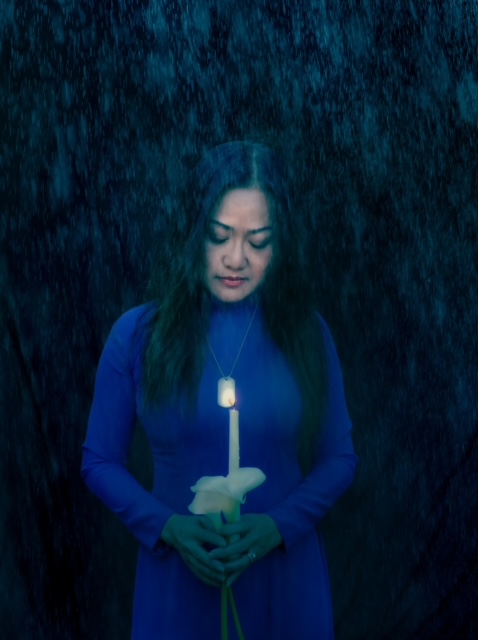 | NƯỚC MẮT NGƯỜI VỢ LÍNH Hong cho khô dòng máu đen da vàng nhược tiểu. Anh nằm đó, mắt trợn trừng nhìn đời anh gãy đổ. Còn gì nữa đâu anh. Hận thù mang theo làm hành trang chôn kín đời mình. Từ đêm anh chối bỏ sinh phận làm người. Từ đêm anh làm kẻ mộng du nửa khuya tìm về đánh thức tôi dậy. Nhìn dòng máu khô nhuộm đen khuôn mặt anh ma quái dị hình. Tôi tỉnh cơn mê và biết rằng anh đã bỏ tôi Đã Vĩnh viễn ra đi chưa nguôi muộn phiền ngày dài chính chiến Niềm xúc động sóng thần không diễn tả nên câu. Tôi van xin ngày, van xin đêm cho thời gian trì cữu. Cho tôi mở nắp quan tài vuốt ve anh lần cuối. Trong cơn mê cảm khao khát vòng tay anh di động. Tôi trực thức anh không còn là của tôinữa. Tôi oà khóc, thét gào, điên loạn. Giọt nước mắt bức từng sợi nhục cảm khóc tiễn anh đi… Hết thật rồi nghe anh. Xin vo tròn những đê mê tuyệt thế vào poncho này. Xin liệm chôn những tác động ân ái ngày qua trong niềm cảm hoài thánh thiện. Yêu thương giờ còn là huyền thoại đậu vào đỉnh khổ đời tôi Những dự phóng tương lai giờ xám đen tang chế Những khao khát đong đưa ru anh ru tôi vào mộng giờ gãy cánh nửa đời ..! Ôi! Chiến tranh hao gầy tuổi trẻ. Ôi! Hận thù cướp mất quyền sống đời anh. Ngày xanh chưa kịp nhìn bóng dáng mình anh đã phải ra đi chưa nguôi thèm khát. Xin nhỏ giọt nước mắt cuối cùng trên quan tài anh trùng khơi vĩnh biệt. Xin thu nhiếp niềm đau này bằng một lần thăng hoa thần thánh. Xin dung nhập hồn mình giao thoa trong khơi vơi ảo tưởng. Xin hoài hoài gọi mãi tên anh …!!! @ LÊ HỮU MINH TOÁN Houston- 14/ 3/ 2022 |