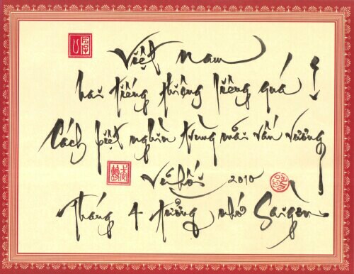 | XÉ LỊCH 30 THÁNG 4 Tờ lịch che ngang mắt mình Lệ thầm rơi, chúc thanh bình cùng nhau Bốn mươi bảy năm qua mau Chiến chinh huỷ giệt, tình sâu gởi mồ Trở về xoá cảnh vong nô Ta quang phục lại dư đồ Việt Nam Cờ bay lẫn áo mầu vàng Nước non rực rỡ sắc hoàng kim xưa… Hawthorne 30 – 4 – 2022 Cao Mỵ Nhân |