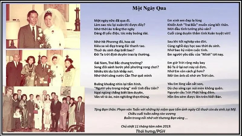 | Tuy Xa Mà Gần (Tặng Phẩm & Lynh) Anh như mây trắng trên trời, Nay đây mai đó cuộc đời thênh thang. Nỗi buồn riêng để Em mang, Những ngày “Xa vắng” Em sang “bên nhà” Quí em hơn cả ngọc ngà Thương nhau xí xóa, mặn mà tình ta. Anh nào có muốn đi xa, VÌ CÔNG, VÌ VIỆC BÔN BA THÁNG DÀI. Ta cùng tạo dưng lâu đài “Tinh yêu chung thủy” miệt mài đắp xây Đời Anh nay đó mai đây, Vì Em làm gió đưa mây khắp trời. Em đừng lộng gió tơi bời, Để mây tan tác, bầu trời tối đen, Thầy, cô, chúng bạn thân quen, Mắt mưa thấm lệ, tai vang sấm trời. Anh vui khi thấy Em cười, Đôi ta trẻ lại thêm mười tuổi xuân. Đời ta thoát khỏi trầm luân, Không ghen, không ghét, thân tâm an bình. Tim anh ghi một bóng hình, Chính là Em đó, người tình trăm năm. Đêm buồn cách trở xa xăm, Nhìn Sao Anh nhớ long lanh “mắt mình” Thái Hưng/PGH |