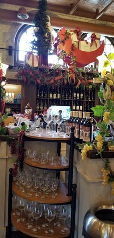 Chúng tôi trở về khách sạn, 14g trở lại và phải trình vé mới được vào bãi đậu xe. Xong đến trạm xe bus (shuttle bus ?) đứng chờ. Chiếc này đến chiếc kia đi. Không biết có tất cả bao nhiêu xe bus,mỗi xe chở khoảng 50 người nhưng tôi đi xe số 17. Từ trạm xe đến lâu đài khoảng 15 phút. Xe chạy trên đường tráng nhựa hai bên là rừng cây, có nơi là suối nước không biết nhân tạo hay thiên nhiên.Khi đến con đường vào lâu đài, trước sân cỏ có hàng rào chắn cao khoảng 6 tấc, đường kính khoảng 1 tấc. Hàng rào này tự động tụt xuống ngang mặt đường khi xe đến và trồi lên trở lại làm rào chắn khi xe qua. Đến nơi lại sắp hàng qua trạm kiểm soát an ninh. Ví nào to hơn kích thước quy định phải gởi lại nơi giữ ví, đi tay không vào. Người sắp hàng vào lâu đài đông lắm. Trong khi chờ tới phiên mình tôi vào xem nơi bán quà lưu niệm và nơi nếm rượu miễn phí. Nơi đây vào tự do, không phải sắp hàng Họ bán nữ trang, giày ví, khăn quàng,rượu, bánh, đồ chơi trẻ con… tất cả đều có nhãn hiệu Biltmore.
