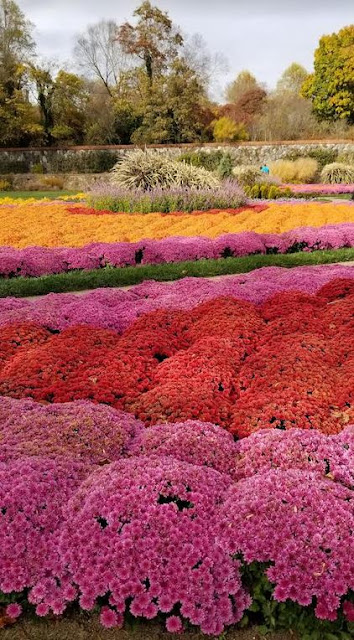 Nhà tiếp tân vườn hoa đang sửa nên cáo lỗi không tiếp khách. Vườn rộng trồng nhiều loại hoa Theo phòng chiêu phim giới thiệu mùa Xuân, mùa Hè vườn có nhiều loại hoa rất đẹp: hoa tulip rực rỡ, hoa thủy tiên quyến rũ, hoa hồng kiêu sa và nhiều loại hoa khác…. Nay hoa hồng đã tàn chỉ còn thưa thớt một ít hoa trên cành. Giàn hoa tử đằng có lá chứ không có hoa. Hoa cúc nhiều lắm, đủ màu rực rỡ, trồng thành các hình dáng khác nhau rất đẹp. Chúng tôi vào nhà kiếng xem hoa lan và các loại hoa khác. Hoa lan trồng nhiều nhưng hoa ít có lẽ trái mùa.