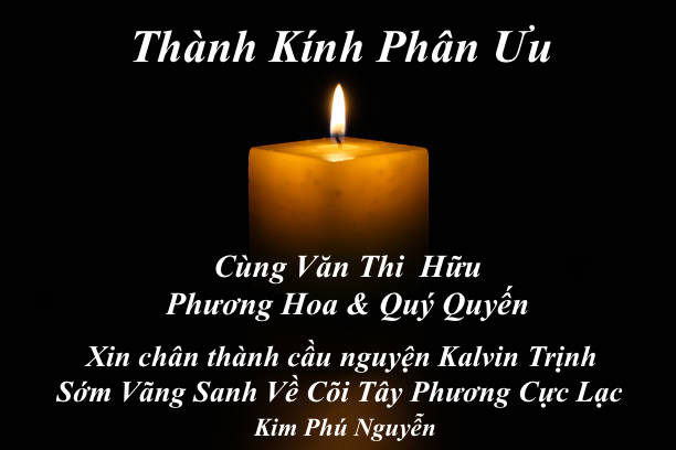 | Thành kính Chia Buồn cùng VH Phương Hoa và Gia Đình Nguyện cầu hương linh Anh Calvin sớm siêu thoát . Mặc Khách |