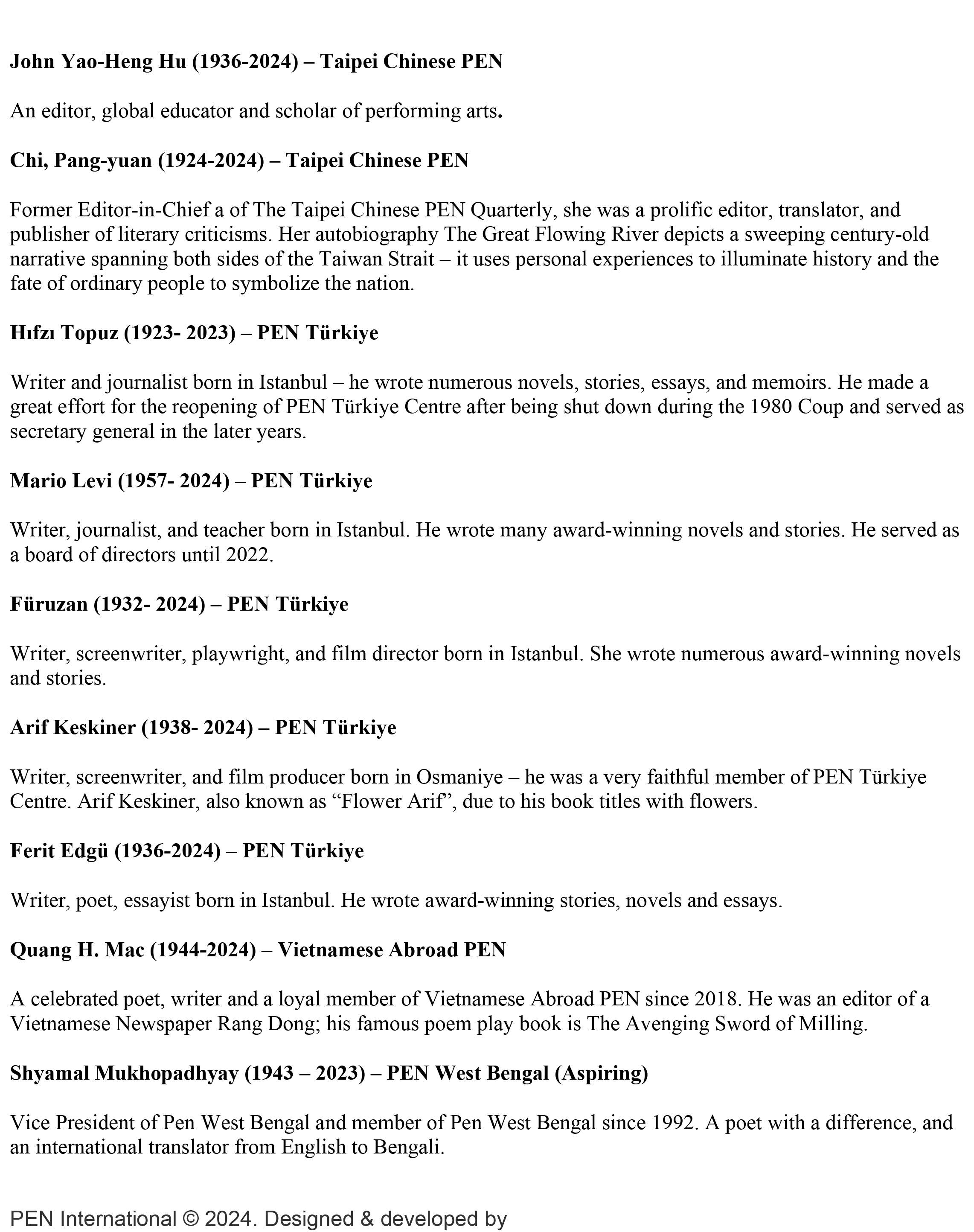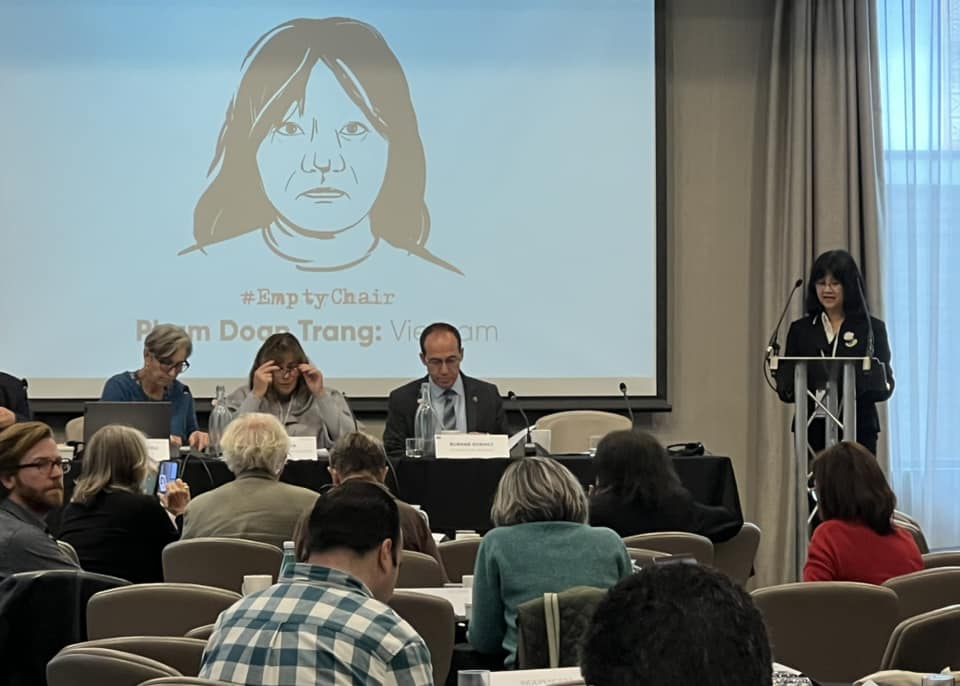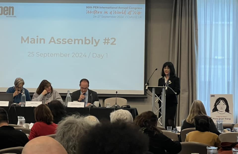 Đại Hội Văn Bút Quốc Tế lần thứ 90 23/9/2024-27/9/2027 tại OXFORD, ANH- Phần II Thứ Tư ngày 25 tháng 9 năm 2024 Sáng hôm nay, tôi rời Travelodge vào lúc bảy giờ rưỡi như hôm qua vì Anh- Thu mời anh Hiệp và tôi ăn điểm tâm lúc 8 giờ sáng tại khách sạn Leonardo. Ăn sáng xong, chúng tôi đến phòng họp. Lúc bấy giờ tôi mới biết là hai phòng họp của Uỷ Ban Các Nhà Văn vì Hòa Bình và Uỷ Ban Các Nhà Văn bị Cầm Tù được nối lại để tất cả các đại biểu đều tham dự cùng một lúc chứ không tách riêng như hôm qua. Và cũng chính lúc ấy, tôi mới hiểu khi giới thiệu phần chiếc ghế trống số hai (#2) lúc hai giờ chiều hôm ấy là tôi phải giới thiệu với toàn bộ cử tọa chứ không phải chỉ trình bày trong cuộc họp của Uỷ Ban Các Nhà Văn bị Cầm Tù. Đúng chín giờ, mọi người đều tập trung vào phòng họp. Ai nấy tìm chỗ ngồi qua các bảng ghi tên của trung tâm Văn Bút mình. ![]() ![]() Sau phần chào mừng của ông chủ tịch Văn Bút Quốc Tế Burhan Sonmez, là phần giới thiệu chiếc ghế trống số một (#1) do Cat Lucas đảm trách. Kế đó là phần tưởng niệm các hội viên của Văn Bút Quốc Tế qua đời trong năm 2024. Tôi cảm thấy rất ấm lòng khi thấy tên của văn hữu Mạc Hồng Quang trên bảng giới thiệu. Dầu sao, tôi đã đại diện VBVNHN tạo điều kiện cho các hội viên được ghi tên vào lịch sử của Văn Bút Quốc Tế. Mặc dù ban tổ chức Đại Hội không cho phép chúng tôi quay phim chụp hình, nhưng họ đã thuê một bộ phận lo chuyện ấy. Điều này có nghĩa là những sự kiện diễn ra trong buổi họp lớn như vầy đều được ghi lại và sẽ được lưu trữ kỹ. ![]() ![]() ![]() Sau phần Tưởng Niệm là phần công bố phương cách tiến hành chính thức theo lịch làm việc và phần ghi chép trong cuộc họp trước. Tiếp theo là các báo cáo của chủ tịch Văn Bút Quôc Tế (VBQT), báo cáo của Tổng Thư Ký VBQT, báo cáo của Ban Điều Hành, báo cáo của Thủ Quỹ VBQT, báo cáo của Giám Đốc Điều Hành, và báo cáo của Quỹ Khẩn Cấp của Văn Bút Quốc Tế. Chúng tôi được nghỉ hai mươi lăm phút để dùng cà phê và bánh ngọt. Sau đó, cuộc họp tiếp tục với phần trình bày thi phẩm Sir Ben Okri và hội thảo về Lịch Sử Văn Bút và Những Sự Liên Quan Đến Hiện Nay. Theo lịch, giờ ăn trưa từ một đến hai giờ trưa (13:00-14:00). Nhưng cuộc hội thảo kéo dài đến một giờ hai mươi(13:20 P.M) vì có khá nhiều câu hỏi càn giải đáp nên mọi người trở lại phòng họp trễ hơn quy định. Ban tổ chức hiểu tình trạng này nên linh động lùi lại giờ bắt đầu cho cuộc họp buổi chiều. Đúng hai giờ hai mươi phút(14:20 P.M) cô Tania, chủ trì cuộc họp thuộc Đại biểu Văn Bút Quốc Tế, mời tôi tôi giới thiệu về chiếc ghế trống của Phạm Đoan Trang. Tôi đã nói ngắn gọn theo mười phút quy định với nội dung như sau: Pham Doan Trang- Viet Nam Pham Doan Trang is a writer, journalist, and pro-democracy activist. Trang remains in prison after an appeal against her nine-year prison sentence was rejected by the Hanoi People’s High Court on 25 August 2022. Regarded as one of Vietnam’s most prominent human rights activists, Trang is the author of several books, including Politics of a Police State and Non-Violent Resistance. Trang has received multiple awards in recognition of her advocacy work, including the 2022 Martin Ennals Award and PEN America’s 2024 PEN/ Barbey Freedom to Write Award. In October 2020, Trang was arrested at her home and charged with “conducting propaganda against the Socialist Republic of Viet Nam”, an allegation frequently used to imprison dissident writers and human rights activists. While detained, Trang was denied access to legal counsel and medical care for over a year, raising serious concerns in relation to her pre-existing health conditions such as low blood pressure and chronic pain resulting from her legs being severely injured from a previous assault by the police. Despite her unjust detention drawing international condemnation, including from the UN Working Group on Arbitrary Detention, on 14 December 2021 Trang was sentenced to nine years’ imprisonment. On 1 October 2022, Pham Doan Trang was transferred to a prison located approximately 100km north of Ho Chi Minh City, further hampering visits from her family and legal representatives. ![]() ![]() ![]() Tiếp theo phần giới thiệu chiếc ghế trống Phạm Đoan Trang là những báo cáo của các chủ tịch của các Uỷ Ban rồi đến phần Bầu Cử cho nhiệm kỳ tới. Các ứng cử viên lần lượt phát biểu. Đầu tiên là ứng cử viên chủ tịch Văn Bút Quốc Tế, Tổng Thư Ký VBQT, Phó chủ tịch VBQT, và các ứng cử viên chủ tịch các Uỷ Ban của VBQT. Sau phần phát biểu này, trưởng ban tổ chức bầu cử công bố các cử tri có thể vào website Đại Hội Văn Bút Quốc Tế lần thứ 90 để bầu. Vẫn như điều kiện của những lần Đại Hội trước: Các đại biểu (thường là các chủ tịch) của các Trung Tâm Văn Bút chỉ được tham gia bầu cử khi trung tâm Văn Bút của họ đã đóng tiền niên liễm hàng năm đúng hạn. Đối với tôi, kỳ bầu cử lần này rất dễ dàng và nhanh chóng vì tôi đã biết cách vào website của VBQT, và không phải tìm hiểu nhiều về thành tựu h