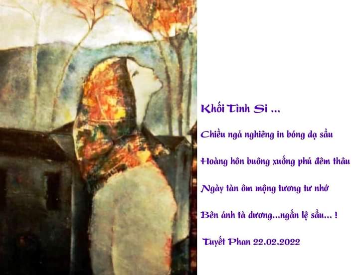 | LẠC TÌNH… Biết yêu sẽ nợ cứ vay Thế nên nặng gánh ngày nay mãi còn Xa xôi vạn nẻo lên non Xuống sông tìm kiếm lê mòn bốn phương Ngày xưa không nợ không vương Giờ đâu thương nhớ tơ vương ngập lòng Chiều tàn ngồi ngẩn chờ mong Hỡi người còn nhớ còn trông còn tìm Tình xưa không nhớ vẫn in Hồn thơ mộng ảo con tim sắc màu Tình như cánh gió về đâu Cho ta gửi trả nợ sau cuộc tình… Tuyết Phan 29-07-2023 Belgique một ngày mưa Hạ buồn |