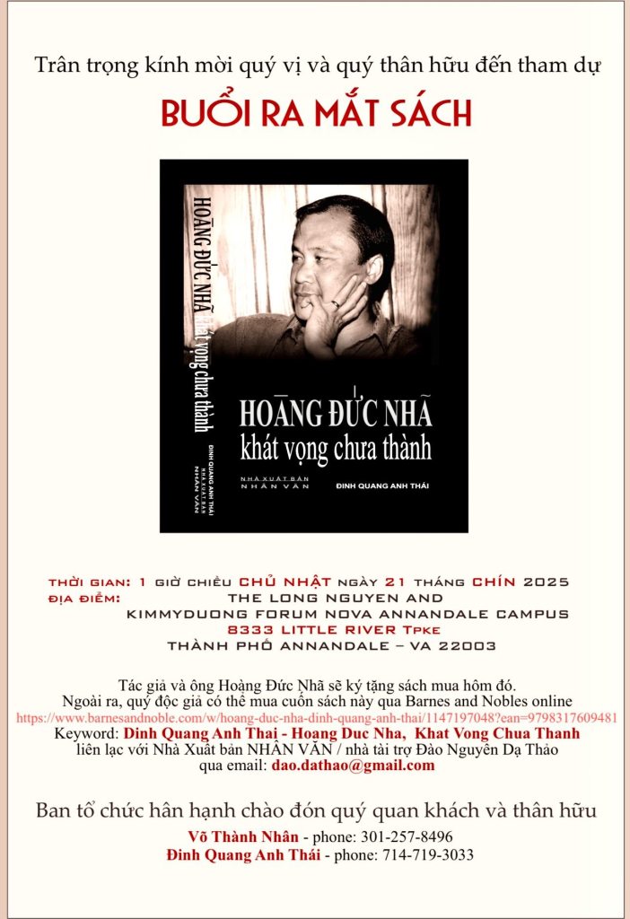 Vài hình ảnh hội viên VBVNHN tham dự buổi Ra Mắt Sách: Hoàng Đức Nhã Ước Vọng Chưa Thành của Đinh Quang Anh Thái
