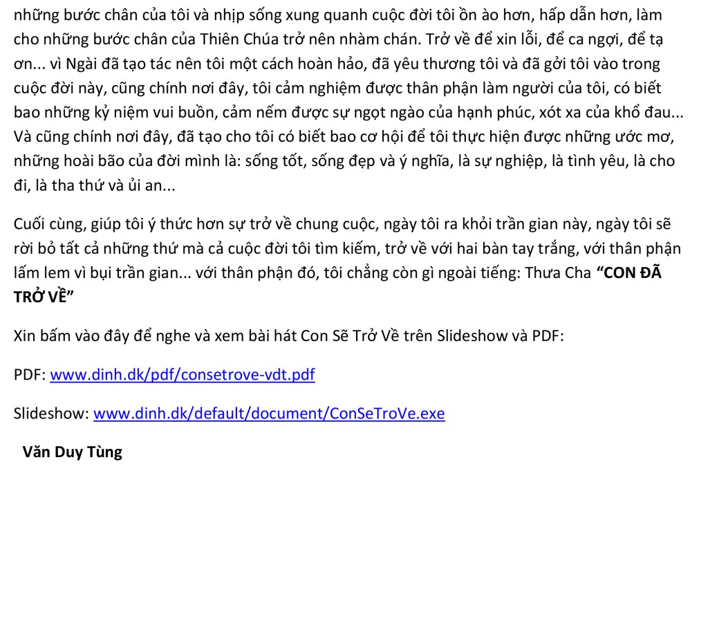 | Nguồn Ơn An Bình- Văn Duy Tùng vui lòng bấm vào tựa đề để xem chi tiết |