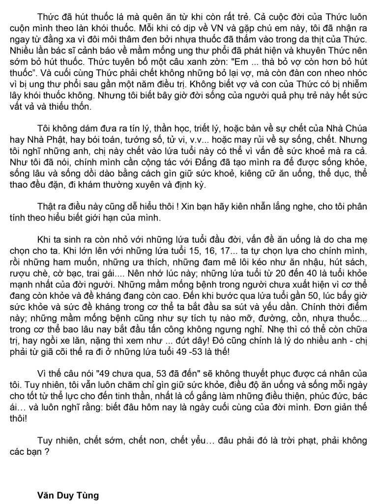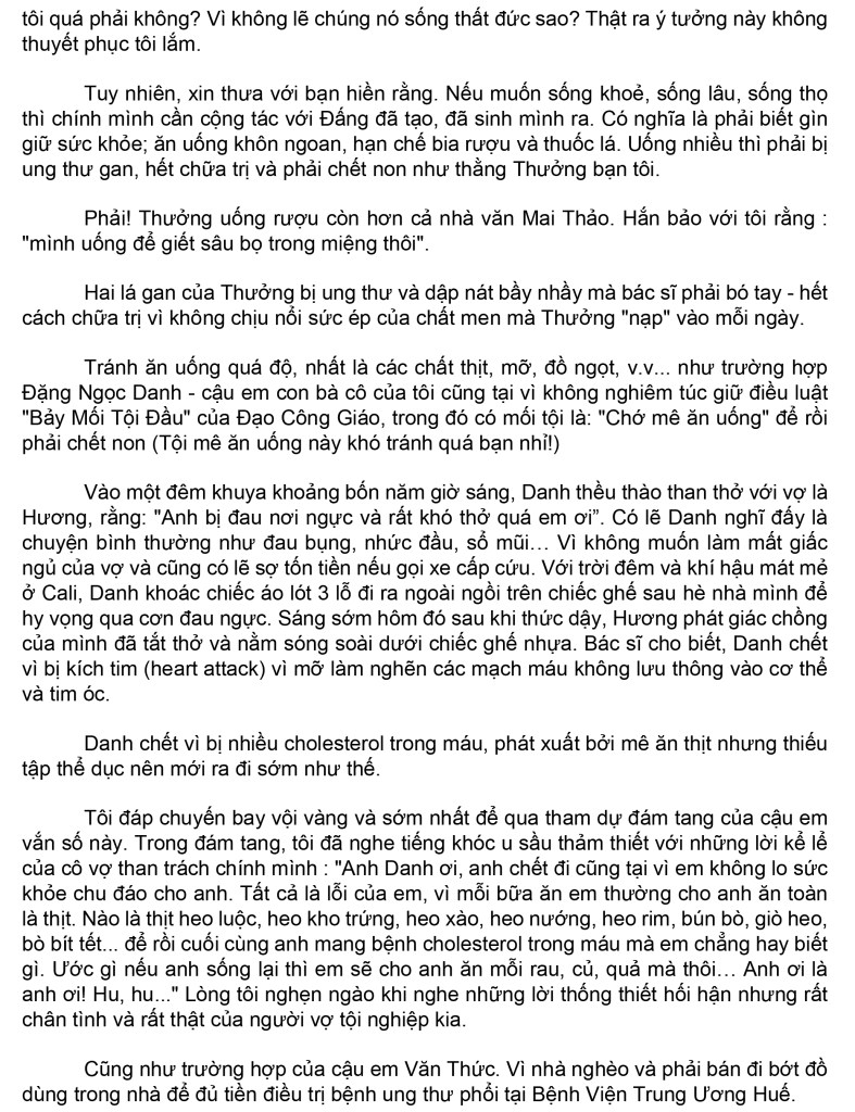 Ơn Cha Mẹ– Văn Duy Tùng Thưa Quý Vị và Các Bạn, Cách đây không lâu, tôi có người bạn gửi cho xem đoạn youtube ngắn do “cộng đồng mạng” ở Việt Nam thu và đưa lên. Trong youtube thu lại cảnh một người đàn ông khoảng 30 tuổi đánh một ông lão khoảng 75 tuổi, bên cạnh có một bà già cũng khoảng tầm 75 tuổi đang quỳ lạy, van lơn và can ngăn người đàn ông 30 tuổi đánh ông lão kia hết sức thương tâm và tội nghiệp. Tôi tìm hiểu và biết được người con trai 30 tuổi đó chính là đứa con ruột của ông bà cụ kia! Sau khi xem đoạn clip đó, tôi hoang mang, bàng hoàng, lòng tôi phẫn uất và căm giận, đầu óc tôi nặng trĩu nghĩ về luân thường đạo lý của con người trong xã hội VN hôm nay. Xin hãy thông cảm và tha thứ cho tôi nếu tôi quá lời vì “vơ đũa cả nắm”, mặc dù tôi tin tưởng đấy là một phần tử rất nhỏ, rất ít. Tuy nhiên khi theo dõi các tin tức và những tình trạng về lĩnh vực đạo đức đang xuống cấp, các tệ nạn đang xảy ra, tôi nghĩ hẳn phải có nguyên do. Các bạn thân mến, Dù sinh ra trong hoàn cảnh với bao năm đất nước chiến tranh trước 1975, tôi vẫn được hấp thụ nền giáo dục căn bản về nhân cách và đạo đức con người, về luân thường đạo lý, biết kính trên nhường dưới, tiên học lễ hậu học văn, về sự thành thật, lòng nhân ái, tính kỷ luật, biết xếp hàng – tuân theo trật tự xã hội, biết nói nhỏ nơi công cộng, học tính dũng cảm và chịu trách nhiệm, không đổ lỗi, đổ thừa cho người khác, học tính cao thượng, không nuôi dưỡng tính tiểu nhân, học tính quảng đại và vị tha, biết san sẻ tình người vì, “một con ngựa đau cả tàu không ăn cỏ”… Thưa, các môn học đó chính là Đức Dục! Ai cũng nhận thấy tầm quan trọng của môn học Đức Dục này bởi môn này dạy và rèn luyện cho giới trẻ về nhân cách, về những đức tính nêu trên, vì sẽ có ảnh hưởng rất lớn đến nhân cách của học sinh, rồi dần hình thành nhân cách của một con người. Các môn học này được học ngay từ những ngày đầu tiên, đầu đời khi mới vào các lớp tiểu học, và chính nhờ thế, những điều căn bản về đạo đức này đã ăn sâu trong máu, trong tiềm thức của chúng tôi cho đến hôm nay và sẽ suốt đời. Trong khi đó và thử hỏi nền giáo dục hôm nay, có được tương xứng như vậy không? Thay vì những lớp “khai tâm” ta nên dạy những lễ nghĩa, những luân thường và đạo lý để trở thành một con người nhân bản khi lớn lên. Nhưng tiếc thay, điều đó đã không được quan tâm chu đáo, và nay đã đến lúc sau một thời gian “trồng người”, xã hội VN nhất là giới trẻ đang đến hồi báo động vì đạo đức băng hoại, văn hóa xuống cấp, học sinh hư hỏng, hỗn láo trong học đường, bạo lực khắp mọi nơi, gian lận thi cử, v,v… Vậy, nguyên nhân do đâu ? Xin thực lòng trả lời, rằng: bởi vì nền giáo dục hiện tại coi nhẹ về môn học Đức Dục – Đạo Đức Học này! Định nghĩa về Đức Dục là gì? Môn học Đức Dục cũng có thể gọi là Đạo Đức Học, bao hàm về đức hạnh cá nhân, mà đức hạnh thì luôn chuẩn mực giá trị trong tư cách, lời nói và hành động. Cũng thế, đức hạnh thì có những tương quan với nhau là: – Hiểu biết đạo đức – Cảm nhận đạo đức – Hành động đạo đức Đạo đức ở đây tôi muốn nói là đạo đức của con người mà không phải đề cập đến đạo đức của một tôn giáo hay các môn phái… Đức hạnh tốt tất phải biết điều tốt, muốn làm điều tốt và thực hành điều tốt cần phải có: – Tập quán tốt của tâm trí – Tập quán tốt của tình cảm – Tập quán tốt của hành động Bất cứ một nền giáo dục nào nếu không chú trọng và đề cao môn học đức dục cho các em, thì hệ quả của văn hóa bóng tối lên ngôi, sẽ len lỏi trong đời sống, sẽ dấy lên những tệ nạn, rồi đảo lộn giá trị đạo đức bắt đầu từ cá nhân, rồi đến gia đình và sẽ tràn lan trong xã hội. Tất cả điều đó sẽ xảy ra chỉ là thời gian mà thôi! Làm sao có thể con em chúng ta phán đoán được cái đúng, cái phải, thiết tha đến điều tốt, điều lành, làm những điều đúng điều ngay…, trong khi chúng ta cố ý thêu dệt đưa ra những môn học, những bài văn của hận thù, của những điều không thực, của sự dối trá; những câu chuyện bịa đặt anh hùng trong sách giáo khoa, những bài toán tính cộng, tính trừ mà hàm số và đơn vị đó là lính mỹ, lính ngụy, lính nhật… Các em bị nhồi nhét, nhồi sọ, vấy bẩn những tâm hồn đơn sơ trong trắng, và nay đã đến lúc nền giáo dục ấy ảnh hưởng và trả lời cho chúng ta qua những gì đang diễn ra trước mặt. Đọc tin tức VN và biết được: “tình hình đang báo động vì đạo đức lớp trẻ đang xuống cấp trầm trọng. Nhất là ở TP. Hồ Chí Minh và Hà Nội, giới trẻ tấp nập dùng chất gây nghiện như ma túy, cần sa, thuốc lắc, ngáo đá, kẹo cao su cần sa, ma túy bóng cười, cờ b