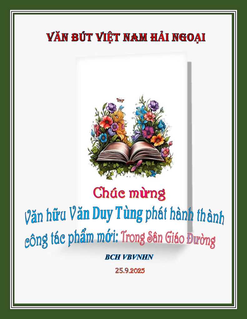 | Các tác phẩm Văn Xuôi của nhạc sĩ Văn Duy Tùng ( Kính mời quý độc giả nhấn vào các tựa đề bên dưới để xem chi tiết) 1.GIAO CẢM Thánh Ca trong đêm hòa nhạc XÁC THÂN LÀM BÁNH 2.VINH CA ANH HÙNG TỬ ĐẠO- Văn Duy Tùng 3. Mẹ Gánh Mặt Trời-Văn Duy Tùng 4. TÁC PHẨM,TÁC GIẢ VÀ NGƯỜI DỊCH THƠ 5. Mẹ Tôi 6. FATHER’S DAY – TẠ ƠN CHA ! 7. TÁC PHẨM,TÁC GIẢ VÀ NGƯỜI DỊCH THƠ-Văn Duy Tùng 8.VINH CA ANH HÙNG TỬ ĐẠO-Văn Duy Tùng 9. Lời Tạ ƠnTrong Ngày Lễ Thanksgiving 2024-Văn Duy Tùng 10. Trí tuệ THẬT và GIẢ-Văn Duy Tùng |