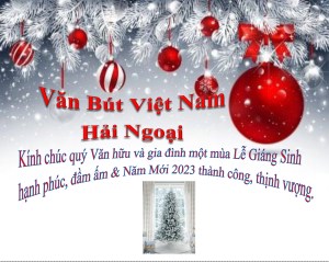 Nhân dịp mùa lễ trở lại, văn thi hữu Hồng Vân xin kính chúc Chủ tịch Cung Lan, Hồng Thủy Và toàn thể các bạn văn thi hữu của VBHNVDBHK một giáng sinh an lành hạnh phúc và một năm mới sung túc vui tươi bên gia đình!