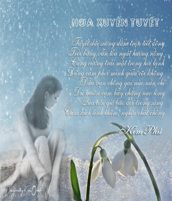 Tuyết lạnh mùa Đông Em đi giữa mùa Đông tuyết trắng Âm thầm lặng lẽ với cô đơn Một mình dạo bước trên đường vắng Nghe giá băng như ngập xuống hồn Chiếc áo lông cừu không đủ ấm Dù tay cố giữ vạt đừng bay Kéo cao cổ áo tìm hơi ấm Mà vẫn nghe tim giá lạnh đầy Tim đã nghe chừng đông cứng lại Không buồn, không khóc, chẳng đau thương Đưa tay hứng tuyết mà tê tái Nhìn tuyết tan đi, mà lạnh cả hồn! Như cuộc tình xưa nay vạn vỡ Cơn sống tình xa, bọt sóng tan Bỏ lại sau lưng trời dĩ vãng Nghe lệ ân tình như tuyết băng . Thôi, ích gì đâu ngồi tiếc mãi Người đã xa rồi yêu dấu ơi! Trời Đông tuyết lạnh thêm tê tái Làm sao áo ấm được tim người? Hoàng Phượng 12.17.2020 |