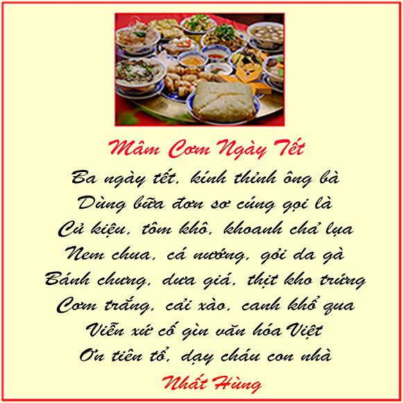 | TẾT NHỚ QUÊ Chiều ba mươi tết, rước ông bà, Gia quyến đoàn viên, tục xứ ta. Một bữa chung nhà trăm thế hệ, Lễ dâng thần thổ trấn viên gia. Bàn thờ tiên tổ đèn hương sáng, Khuya đón Táo quân lại bếp nhà. Mùng một ra đình, chùa cúng bái, Ba ngày thăm, tiếp khách gần xa. Qua đây xứ lạ người trăm nước, Tết nhất không còn lễ tục xưa. Con cháu mưu đời riêng khắp nẻo, Mấy ai sum họp đón giao thừa. Văn,*phong lối sống đều theo khác, Cúng lễ ông bà cháu vắng thưa. Đôi câu phone gọi còn chưa có, Sánh quê ngày cũ nói sao vừa. Nhật Quang Phi Hồ. *Văn hóa và phong tục. |